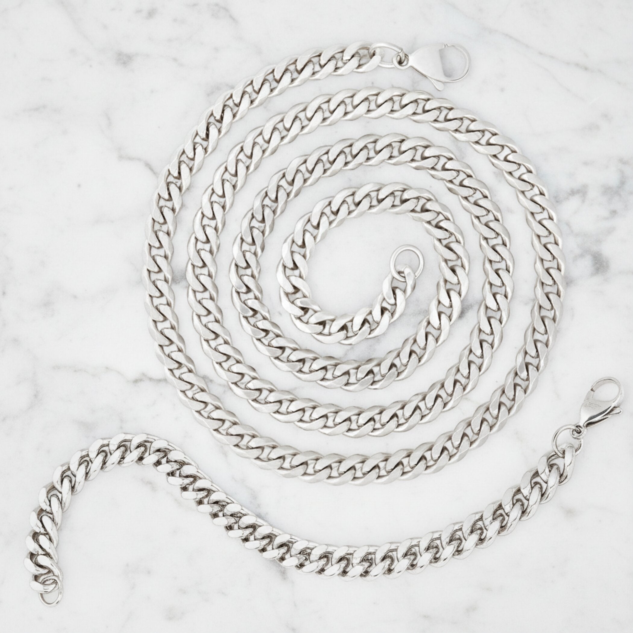 Our necklaces are crafted with the finest stainless steel in the most popular chain styles including box, franco, figaro and curb chains.