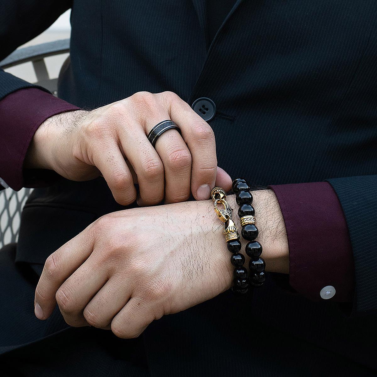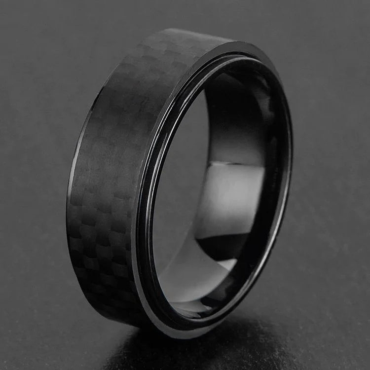 Our rings are crafted from stainless steel, titanium or tungsten carbide combined with carbon fiber.