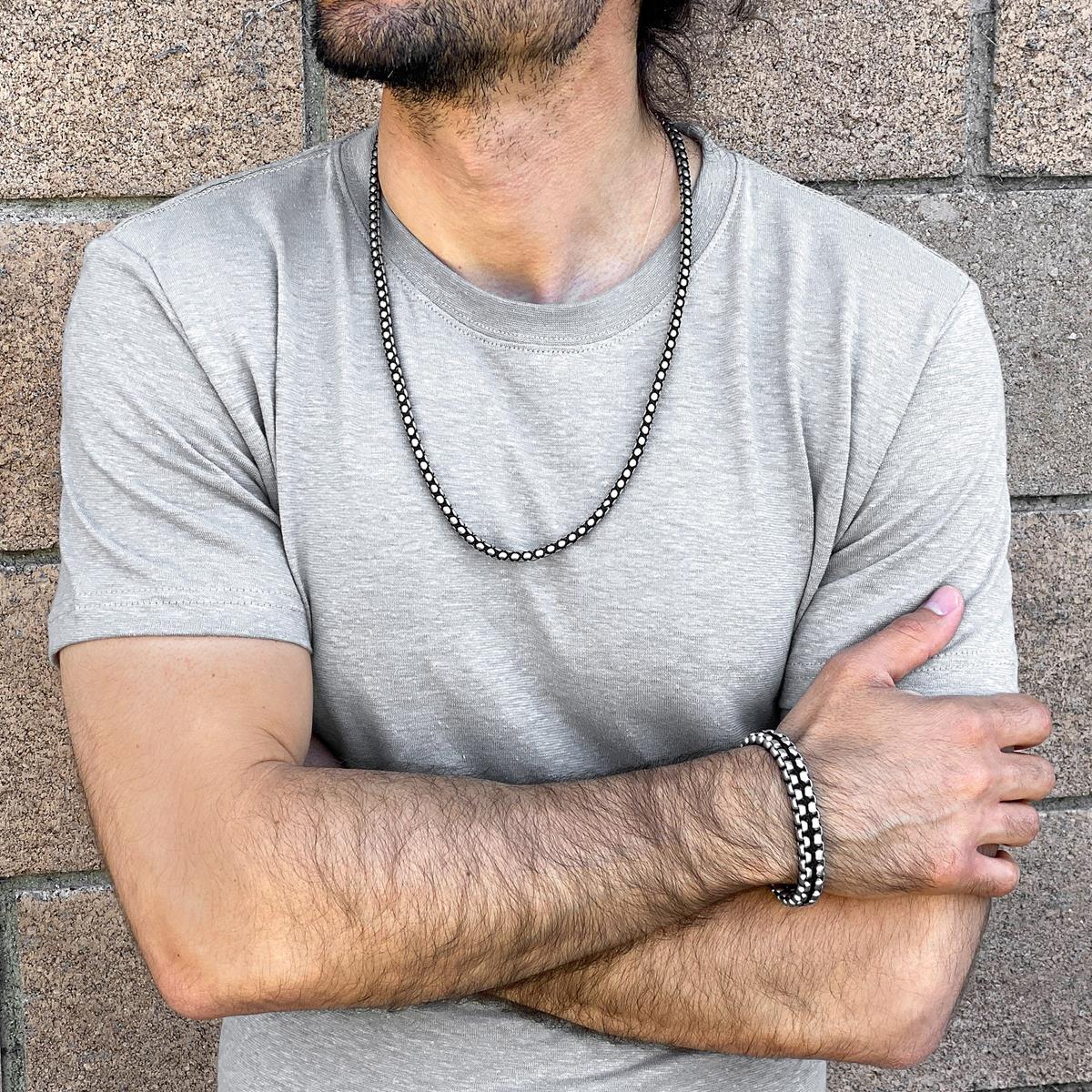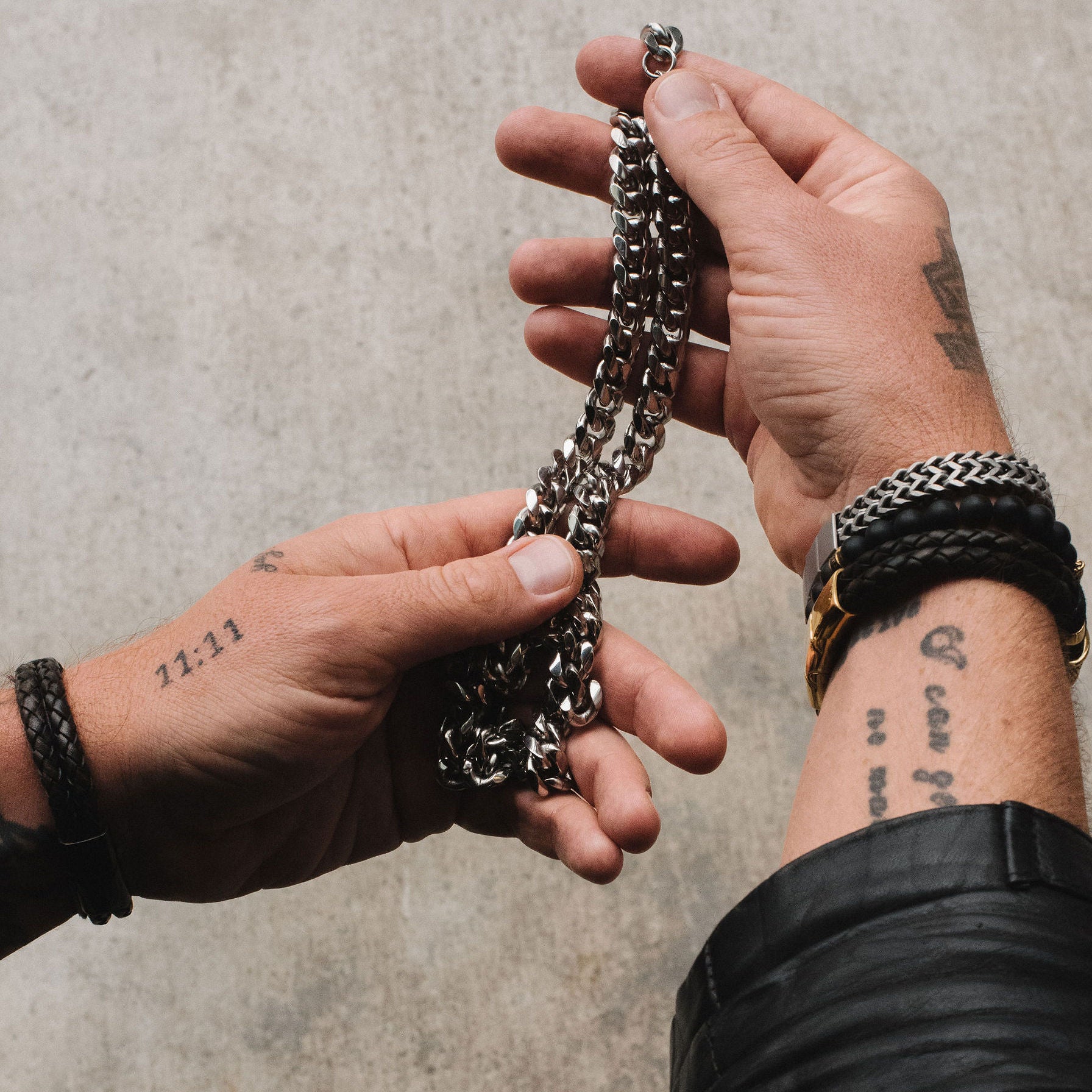 Our necklaces are crafted with the finest stainless steel in the most popular chain styles including box, franco, figaro and curb chains.