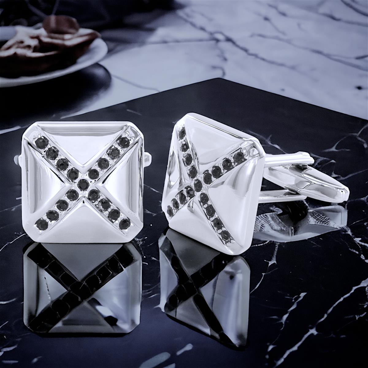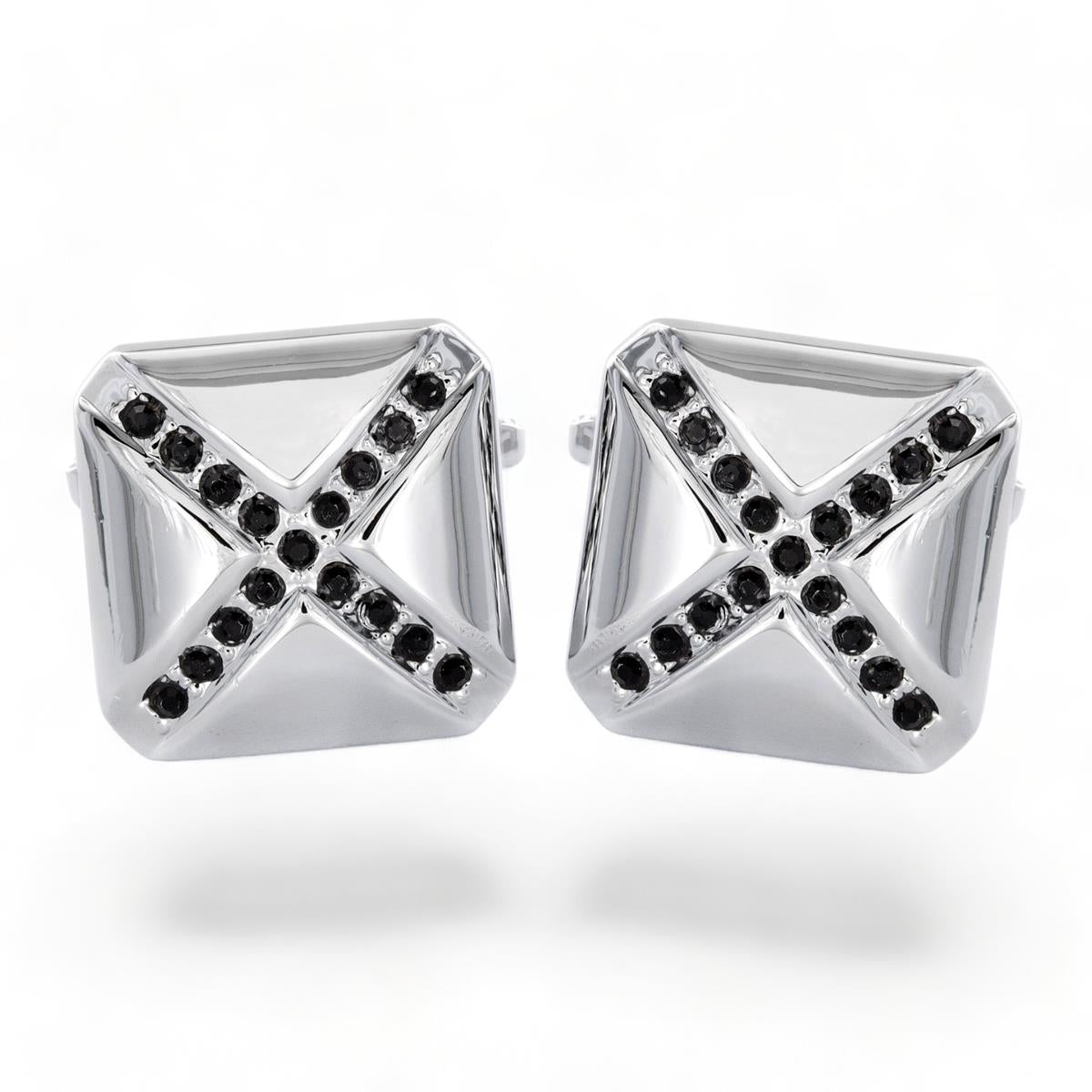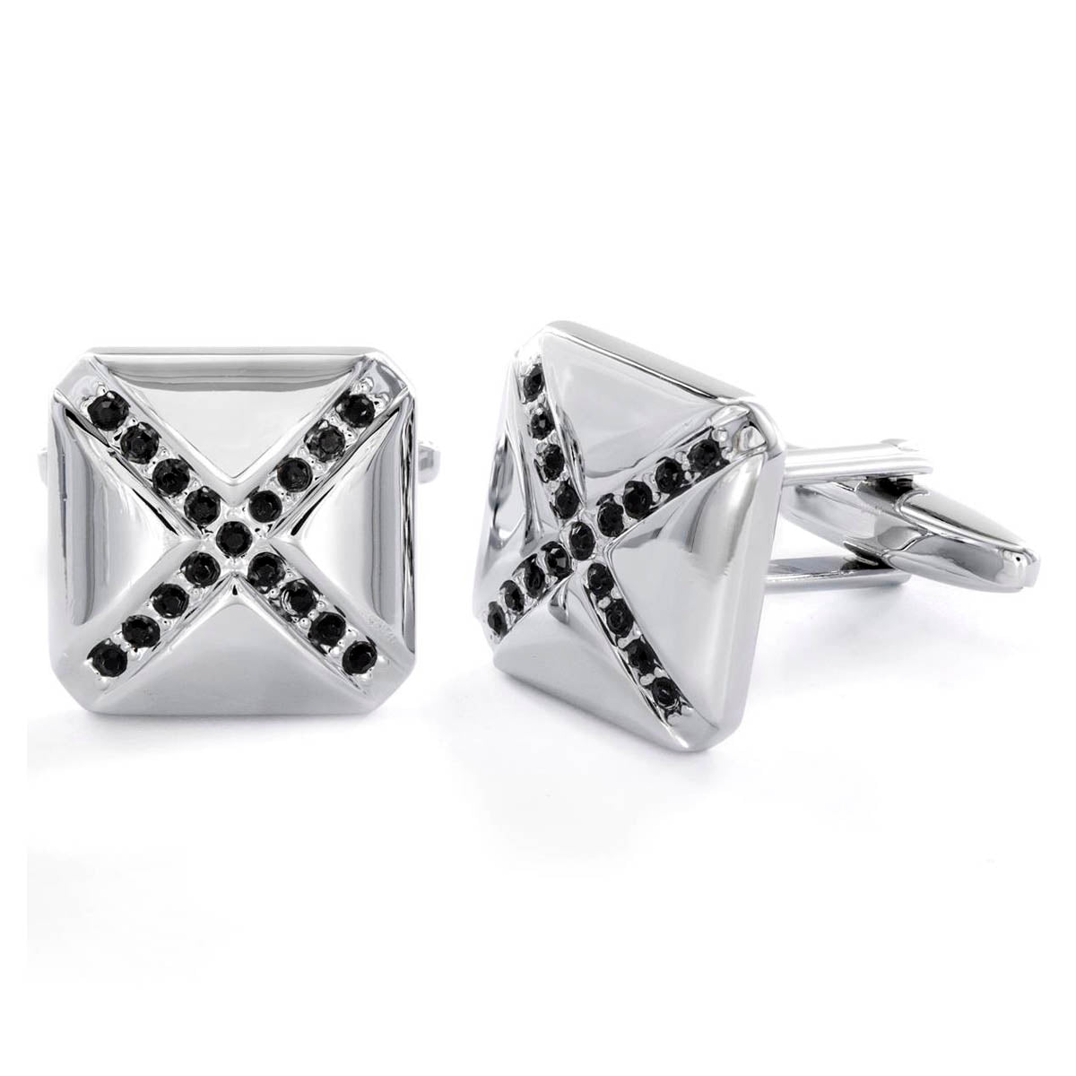 Add a touch of elegance to any outfit when wearing these Crucible Men's Jewelry Polished Cuff Links. Each cuff link is inlaid with black cubic zirconia stones forming an X design. These cuff links are the perfect accessory to wear for formal and casual occasions.