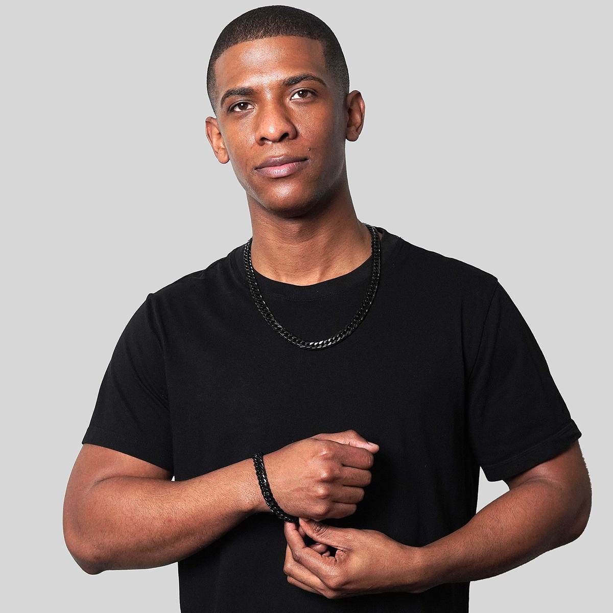 Invicta Jewelry Double Curb Chain Black Bracelet and Necklace Set