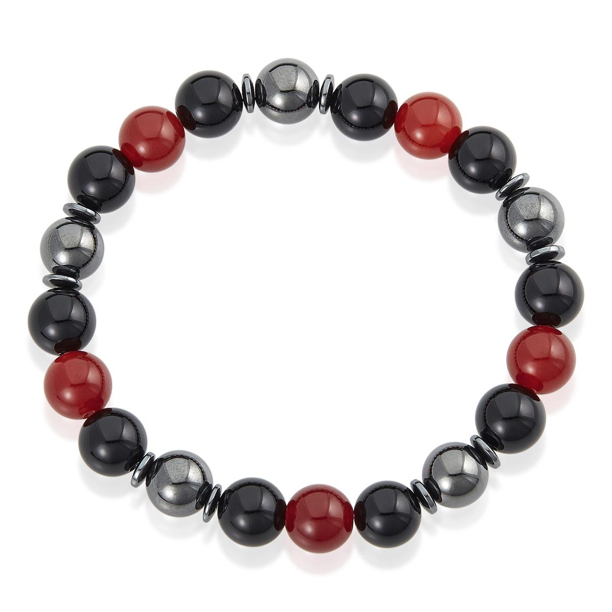 10mm Bead Stretch Bracelet Featuring Red Agate, Shiny Black Onyx and Magnetic Hematite