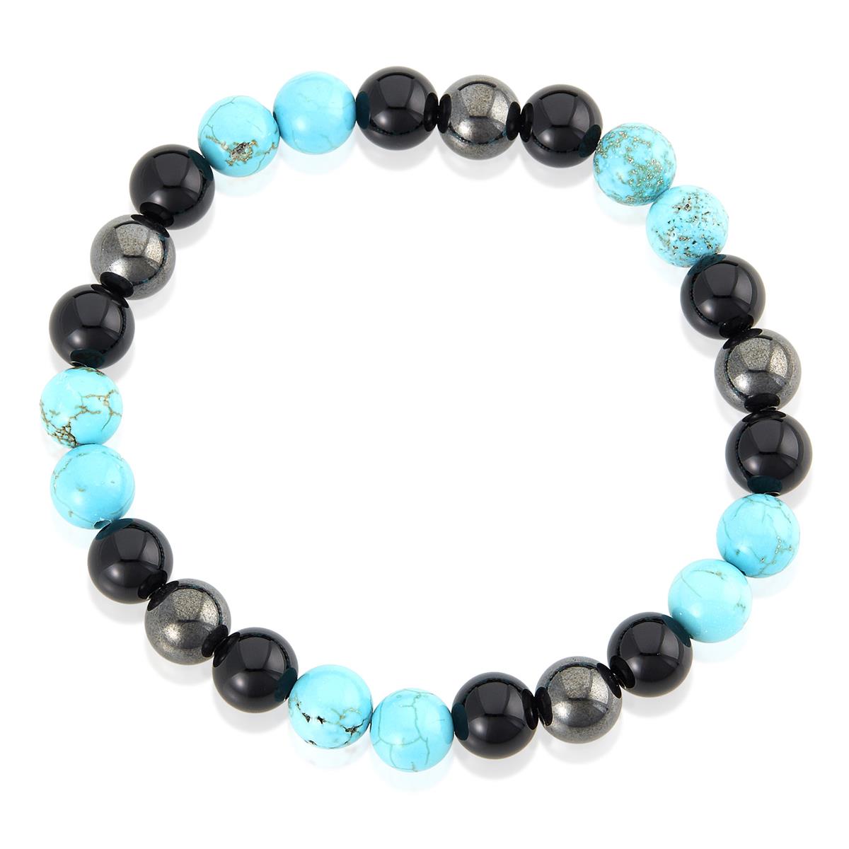 8mm Bead Stretch Bracelet Featuring Turquoise, Shiny Black Onyx and Magnetic Hematite