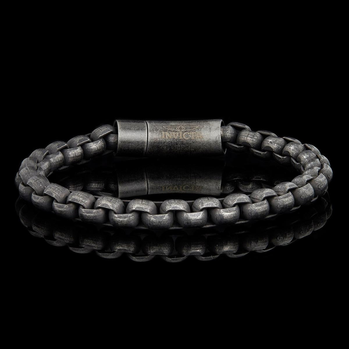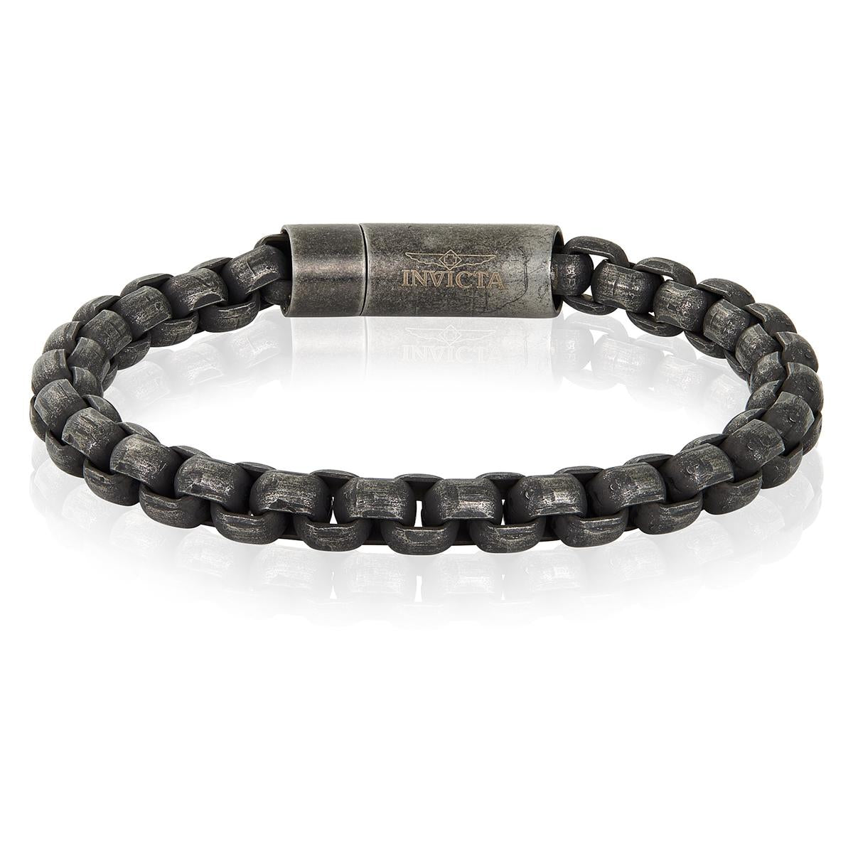 Invicta Jewelry Box Chain Cuff Gunmetal Steel Bracelet