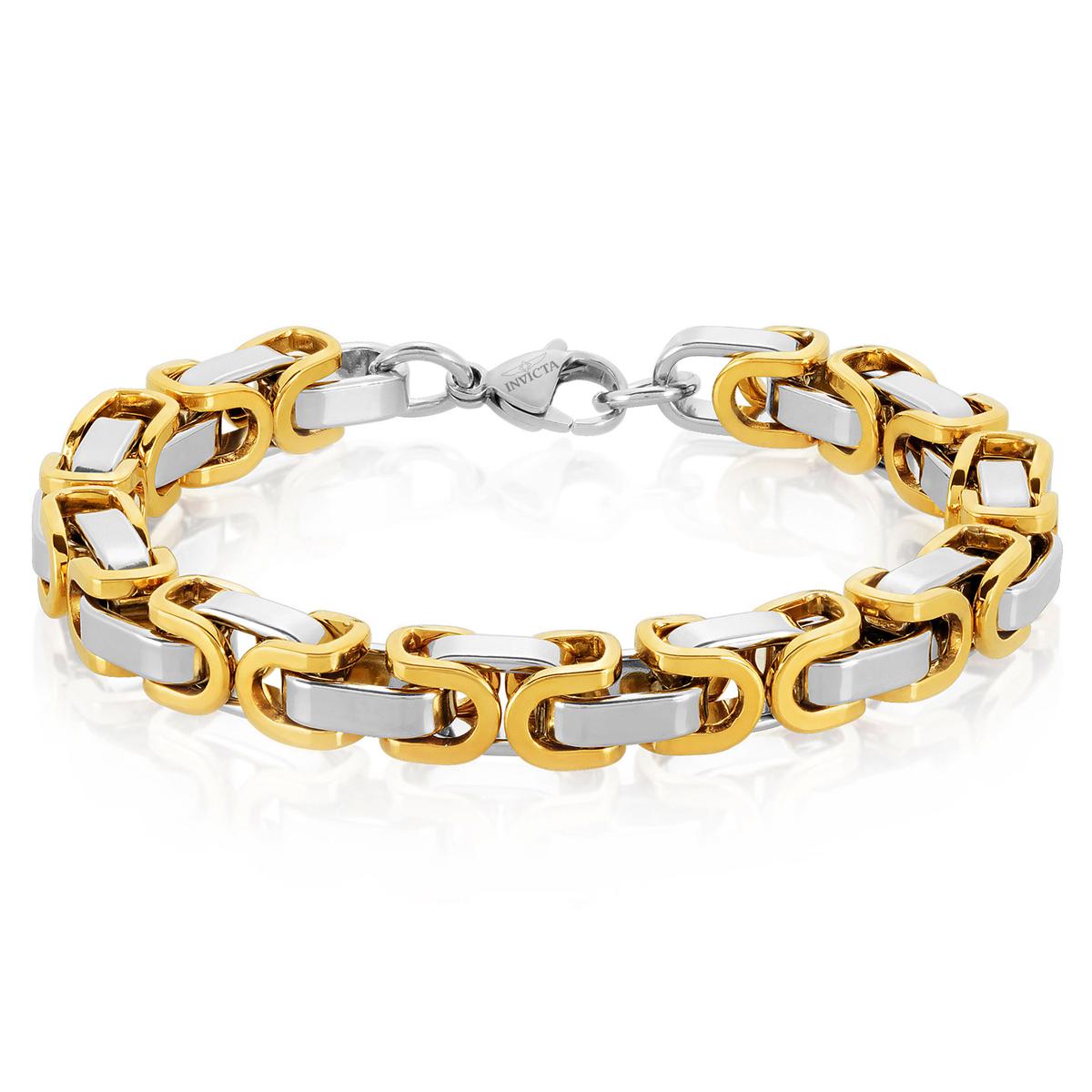 Invicta Jewelry Byzantine Chain Gold Two Tone Steel Bracelet