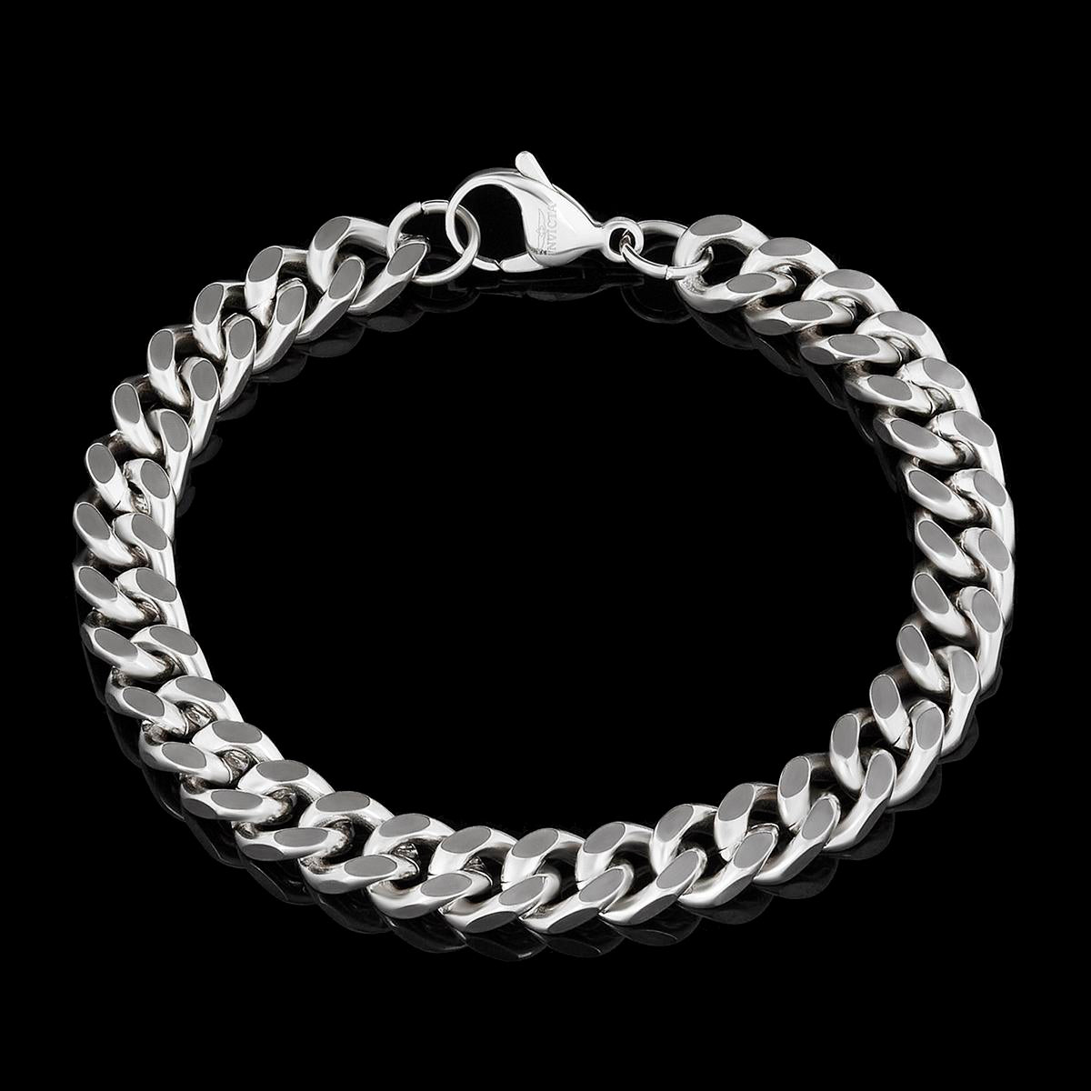 Elevate your style with this sleek and sophisticated Invicta Jewelry Men's Knife Edge Curb Chain Stainless Steel Bracelet. The knife cut edge curb chain is crafted with durable stainless steel and has a polished finish. The 8.5 inch curb bracelet has a width of 8.5mm and a thickness of 3mm. The bracelet stays secure with a lobster clasp. The durable and solid links give this piece a total weight of 30 grams. Pair this Curb bracelet with your favorite watch or accessories.