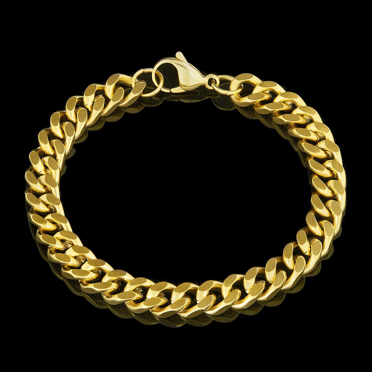 Invicta Jewelry Knife Edge Curb Chain Gold Steel Bracelet
