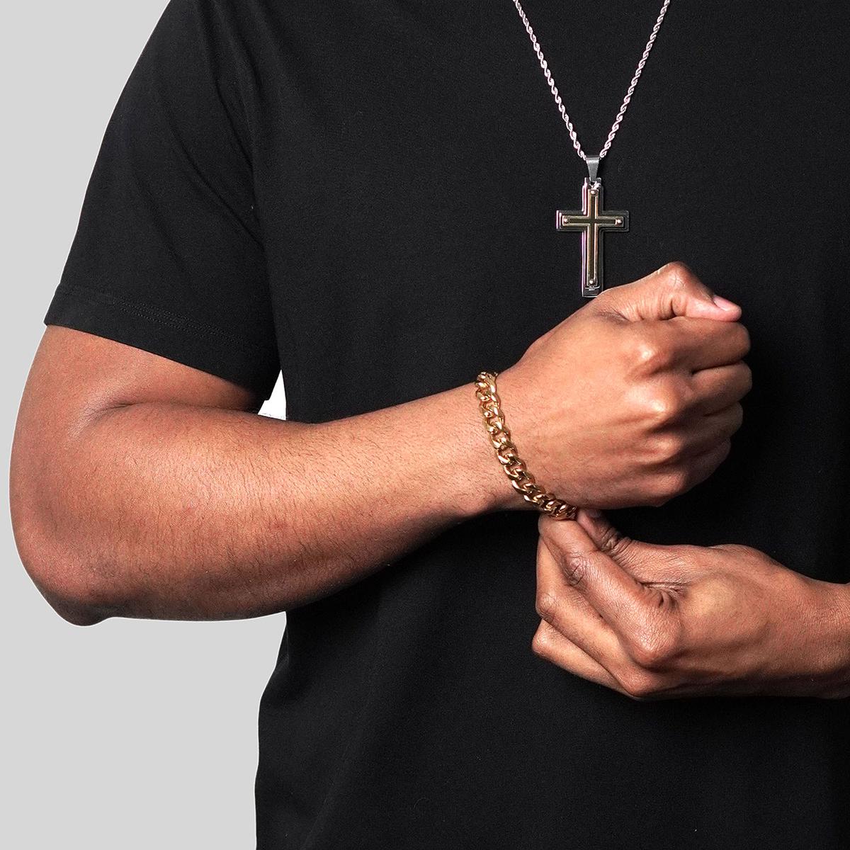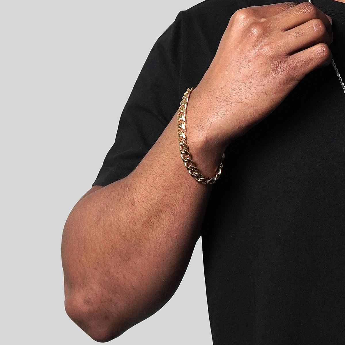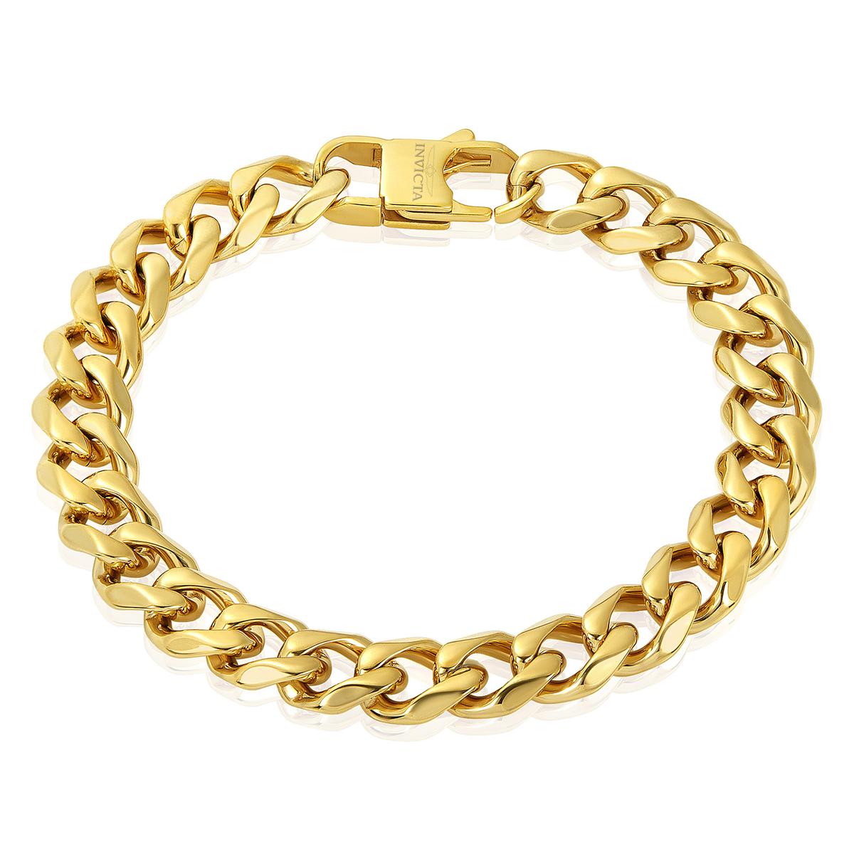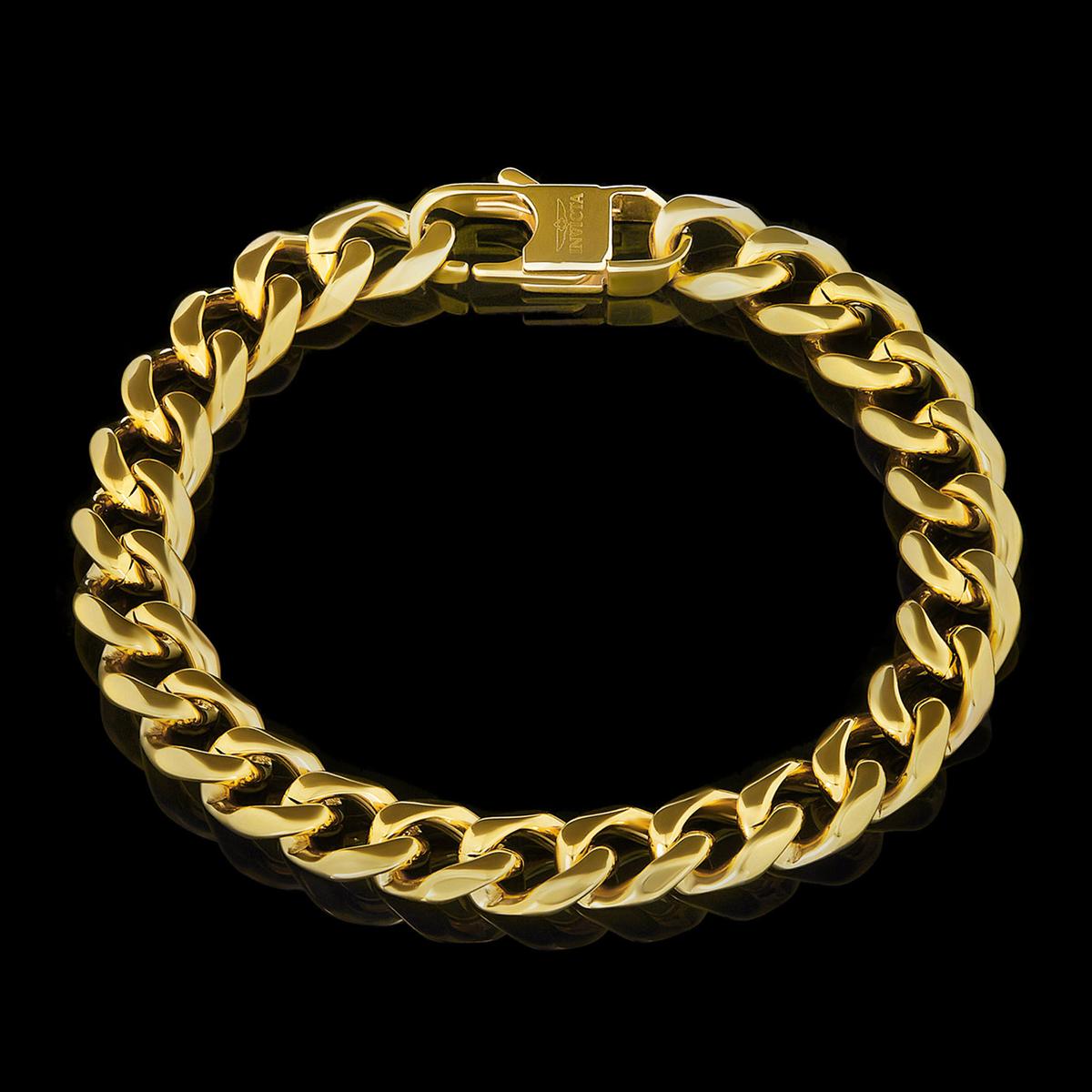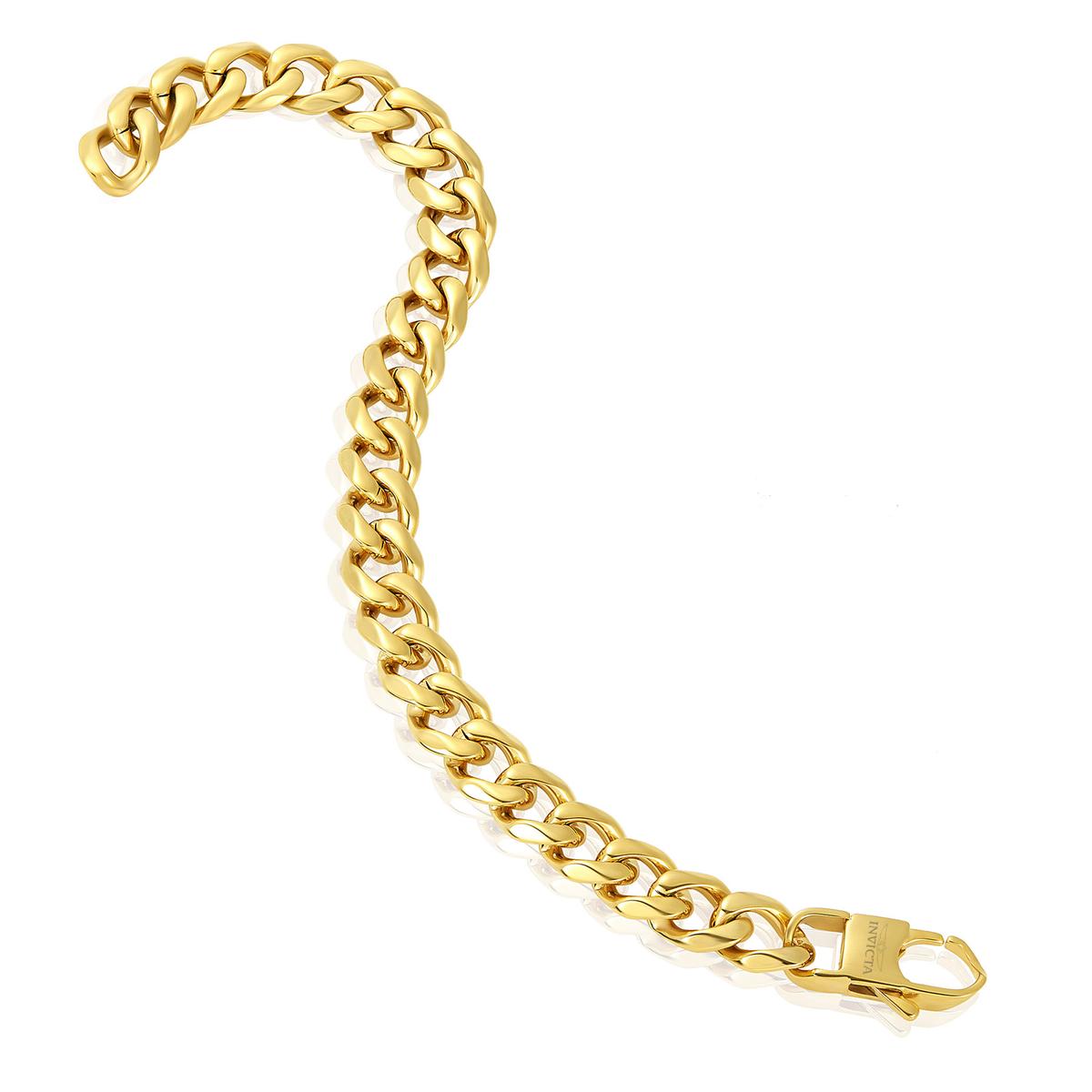 Invicta Jewelry Curved Link Curb Chain Gold Steel Bracelet