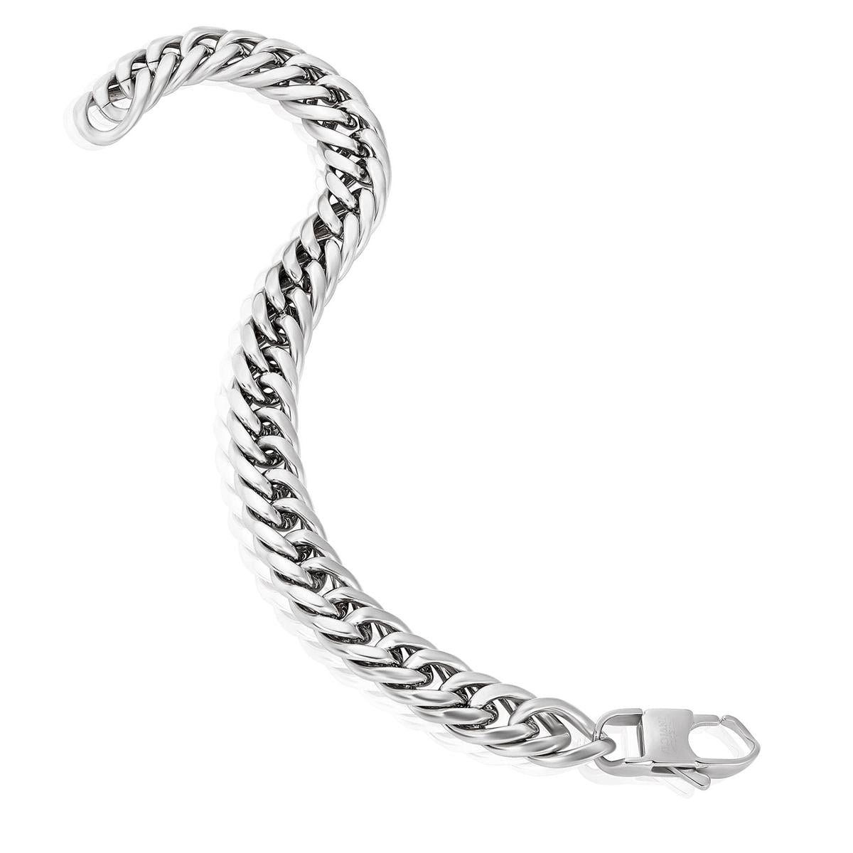 Make any look bold and stylish when wearing this Invicta Jewelry Men's Double Curb Steel Chain Bracelet. The chain features a unique design in which each curb link is linked to every other link, creating a double curb link design. The polished 8.75 inch curb bracelet has a width of 11.5mm and a thickness of 5mm. The chain fastens with a large lobster clasp. The solid links give this curb bracelet a total weight of 49 grams. Pair this stylish Curb chain with your favorite watch and accessories.