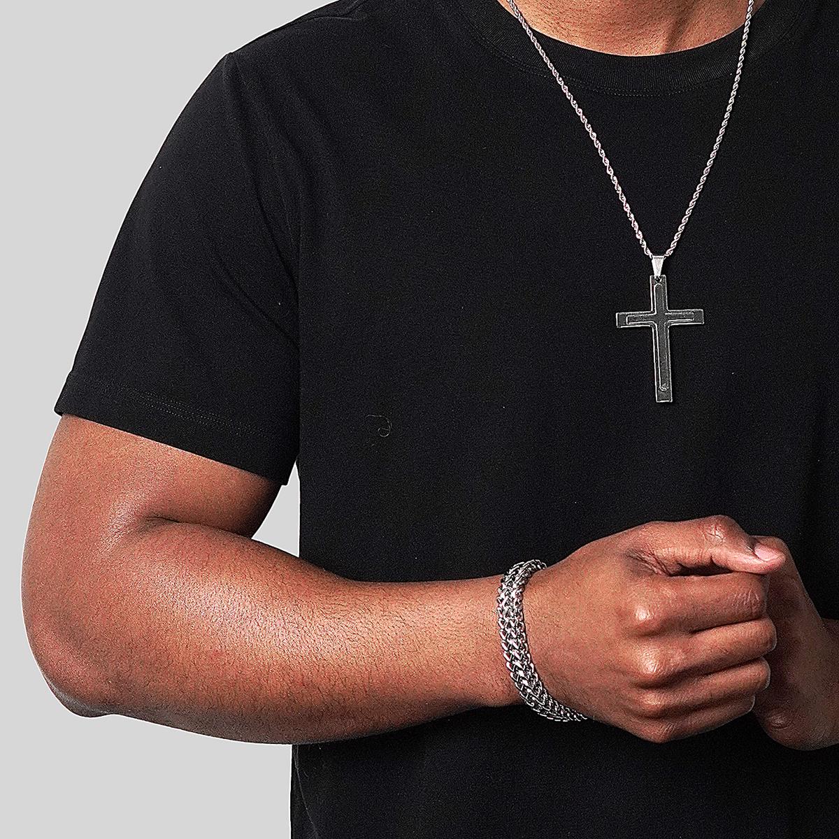 Impressive and bold this gleaming Invicta Jewelry double row Franco chain bracelet will become your favorite statement piece. The stainless steel construction will make this piece durable and your favorite go to. The bracelet has a length of 8.75 inches and a width of 9/16 inches. The layered chain style bracelet wraps around your wrist and secures with a slide insert clasp.