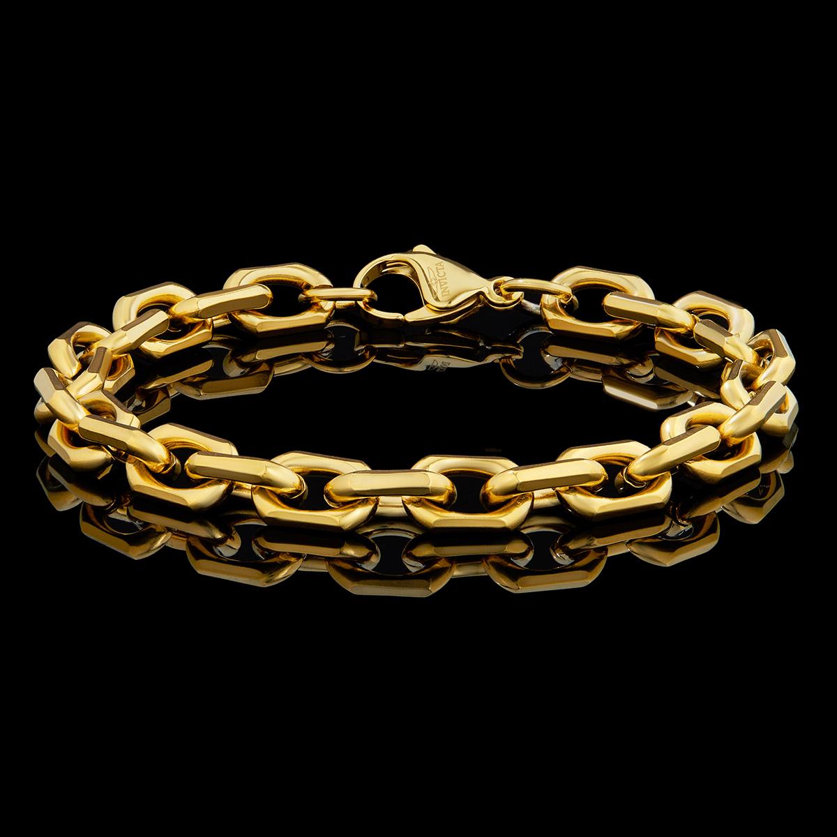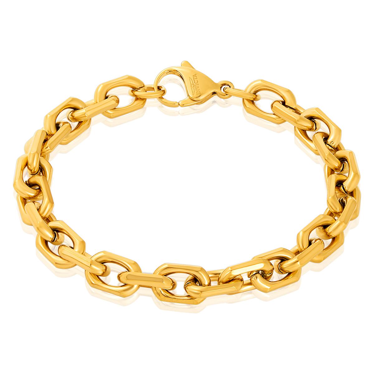 Invicta Jewelry Beveled Edge Rectangular Link Gold Chain Bracelet