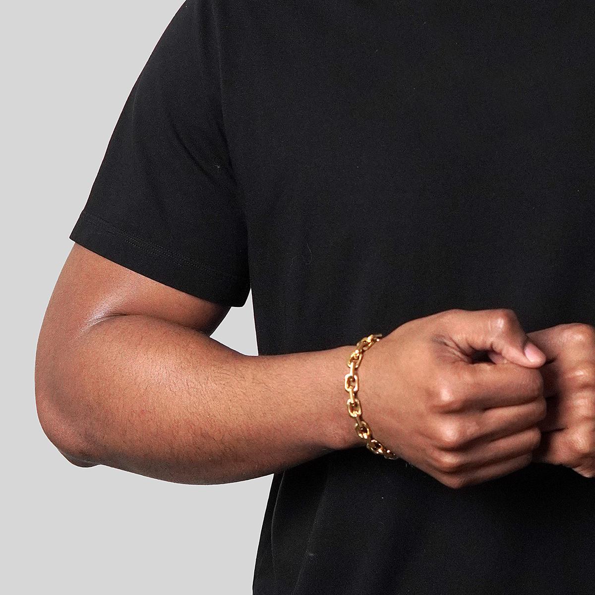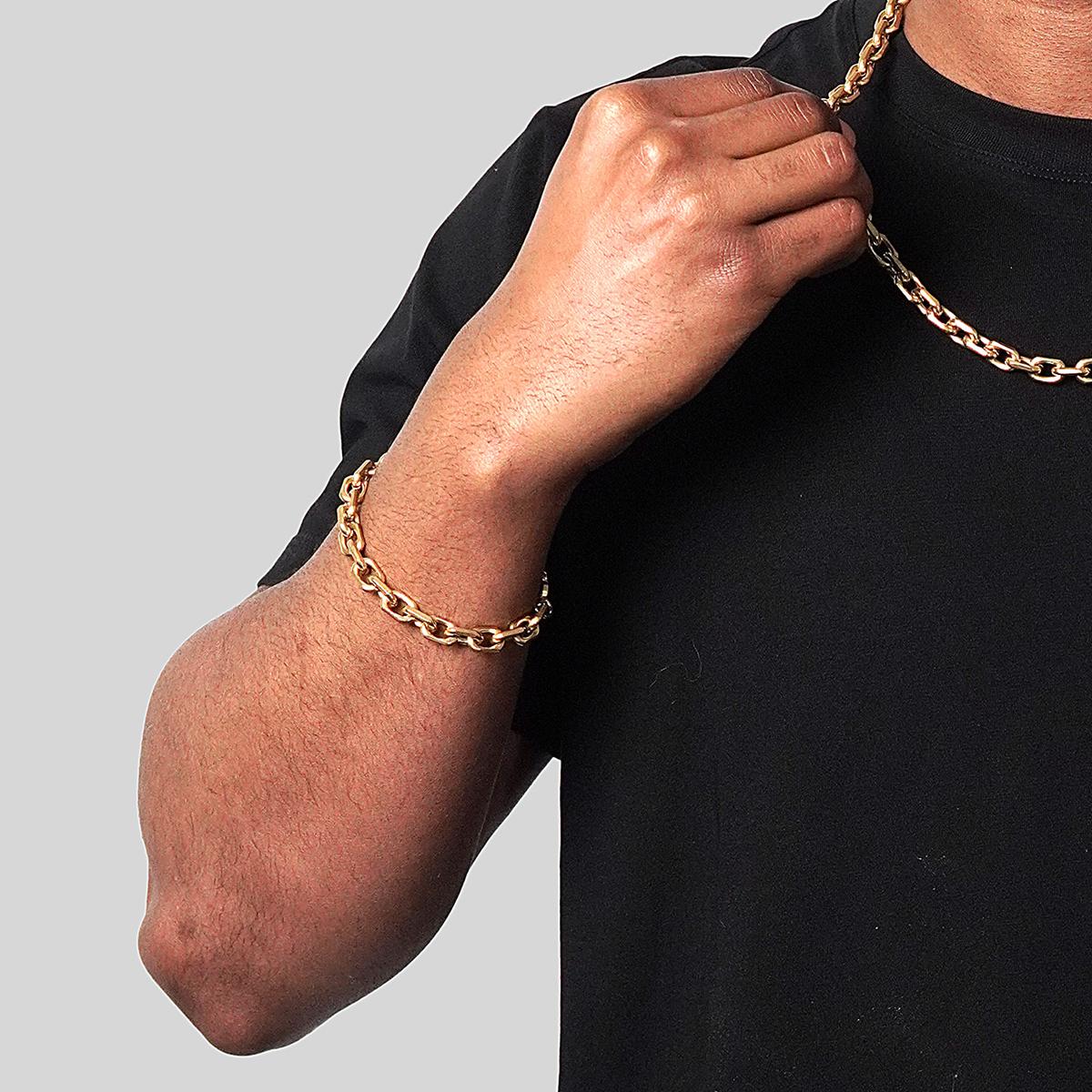Complete your stylish look when wearing this unique link chain bracelet. The bracelet is crafted with durable stainless steel and features rectangular shaped links. The bracelet has a wearable length of 8.75 inches, a width of 8.5 millimeters and fastens with a lobster claw clasp. The matte finish with the beveled edges creates an eye catching design that'll pair perfectly with favorite accessories. Grab the matching chain necklace and complete the look!