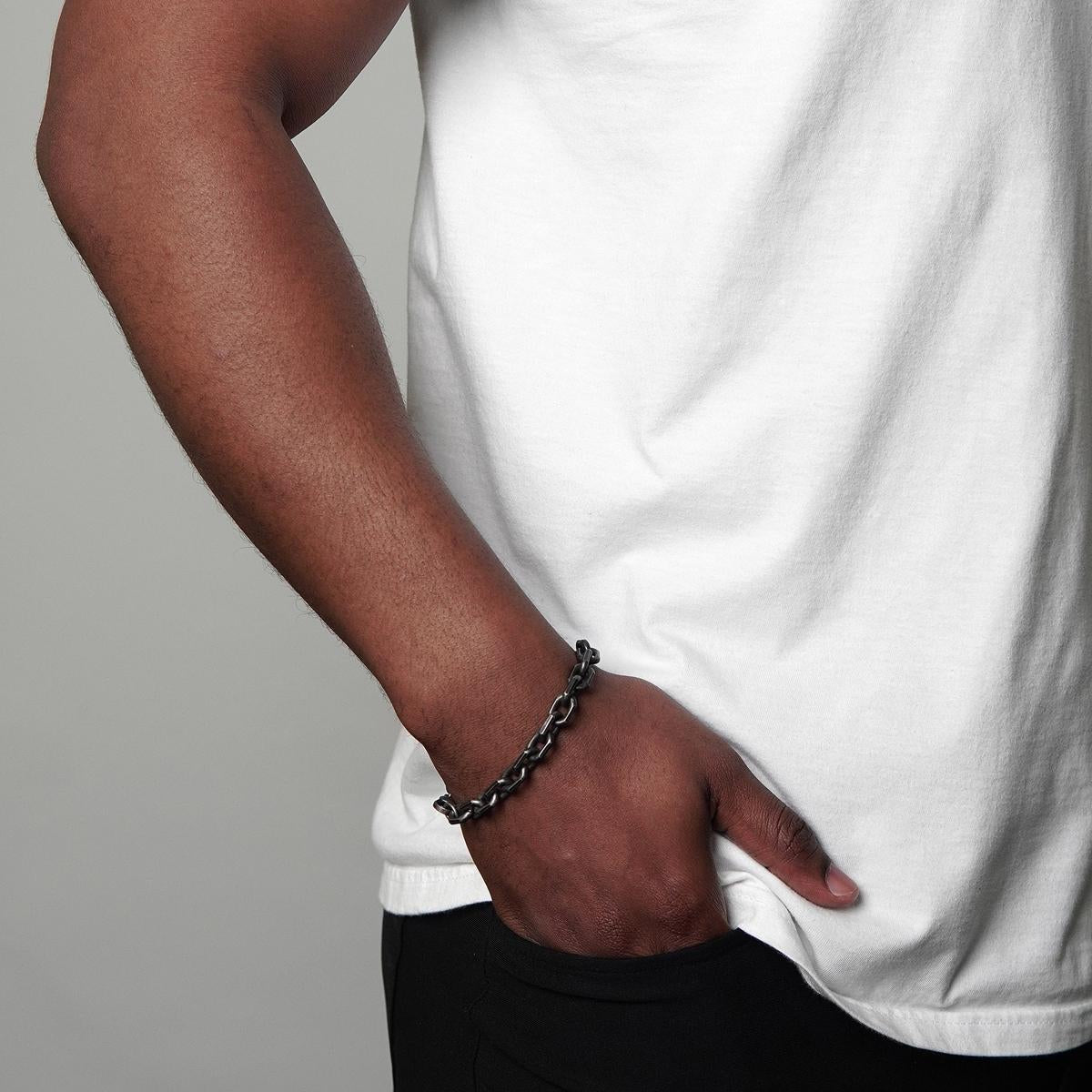 Invicta Jewelry Men's Matte Finish Beveled Edge Rectangular Link Chain Bracelet (8.5mm) - 8.75 Inches