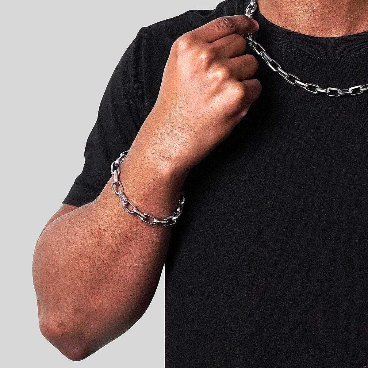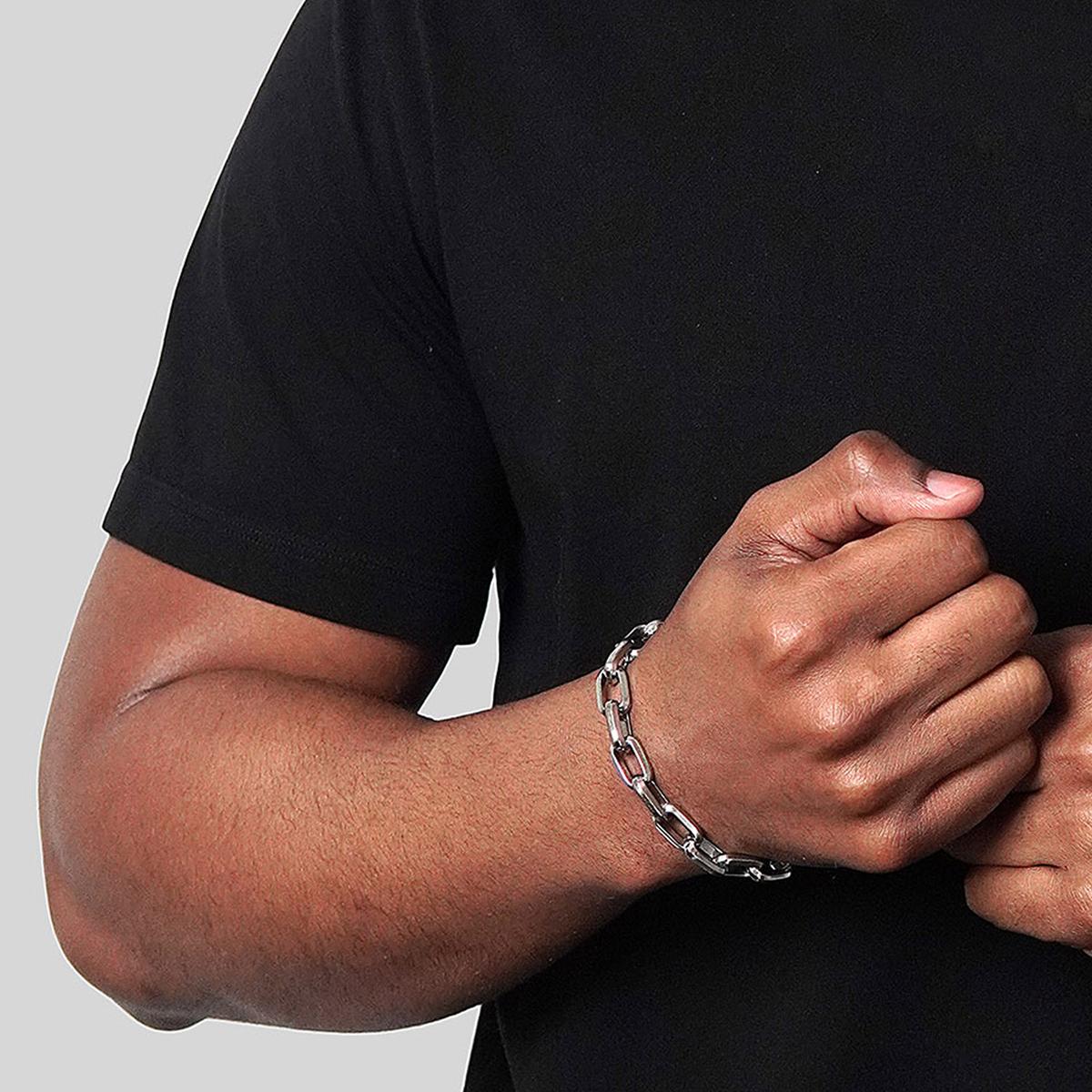 Need an accessory to offset your favorite watch? Then look no further than this Invicta Jewelry bracelet! The link bracelet will pair perfectly with your favorite accessories. The bold stainless steel Nautical oval link bracelet fastens with a large rectangular lobster clasp. The 10 millimeter width link bracelet has a length of 9 inches and is available in two color options. Grab the matching chain necklace and complete the look!