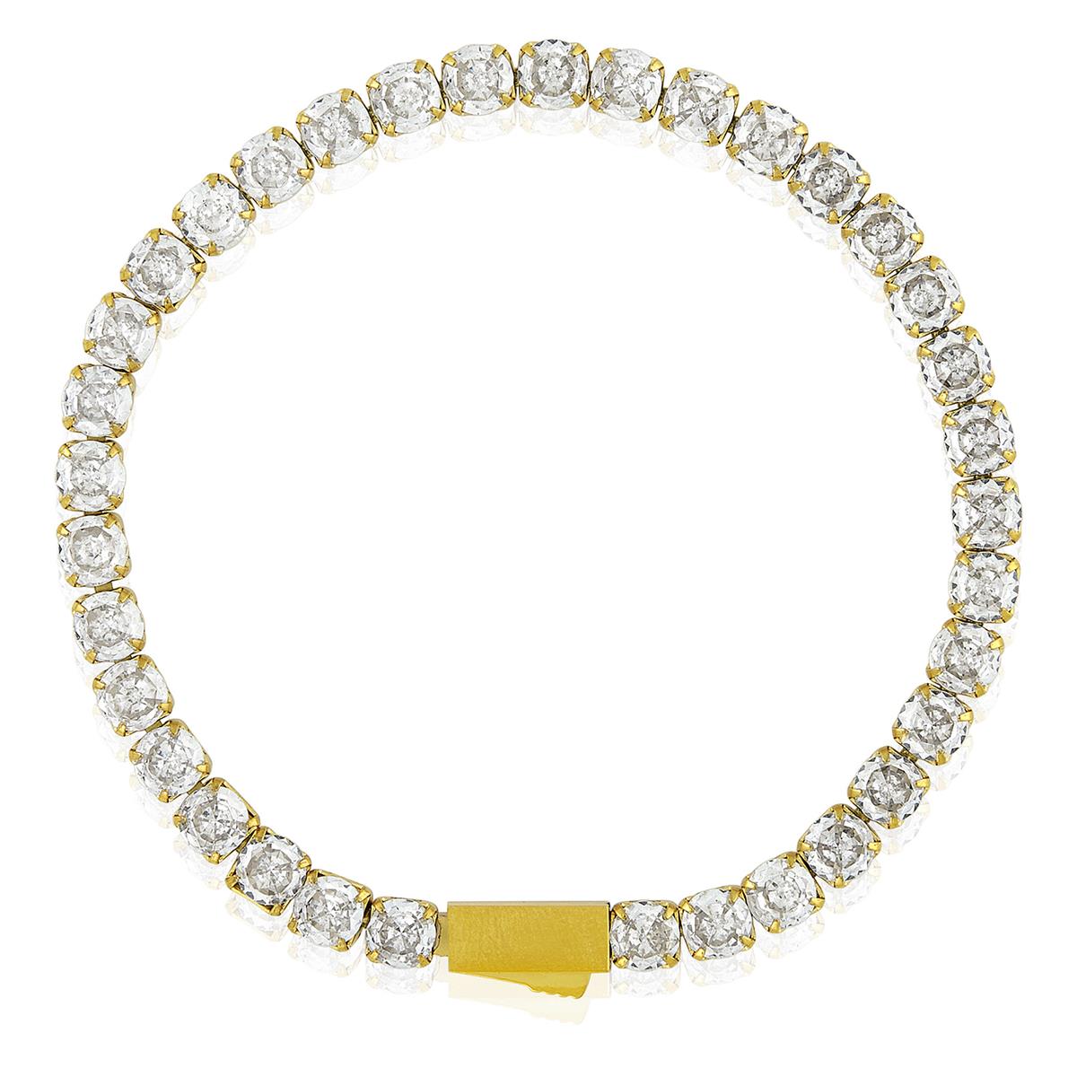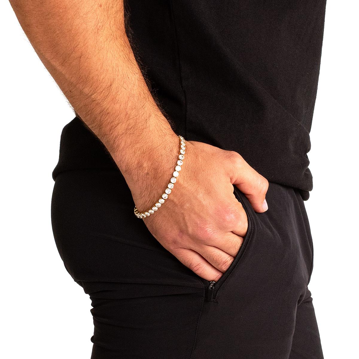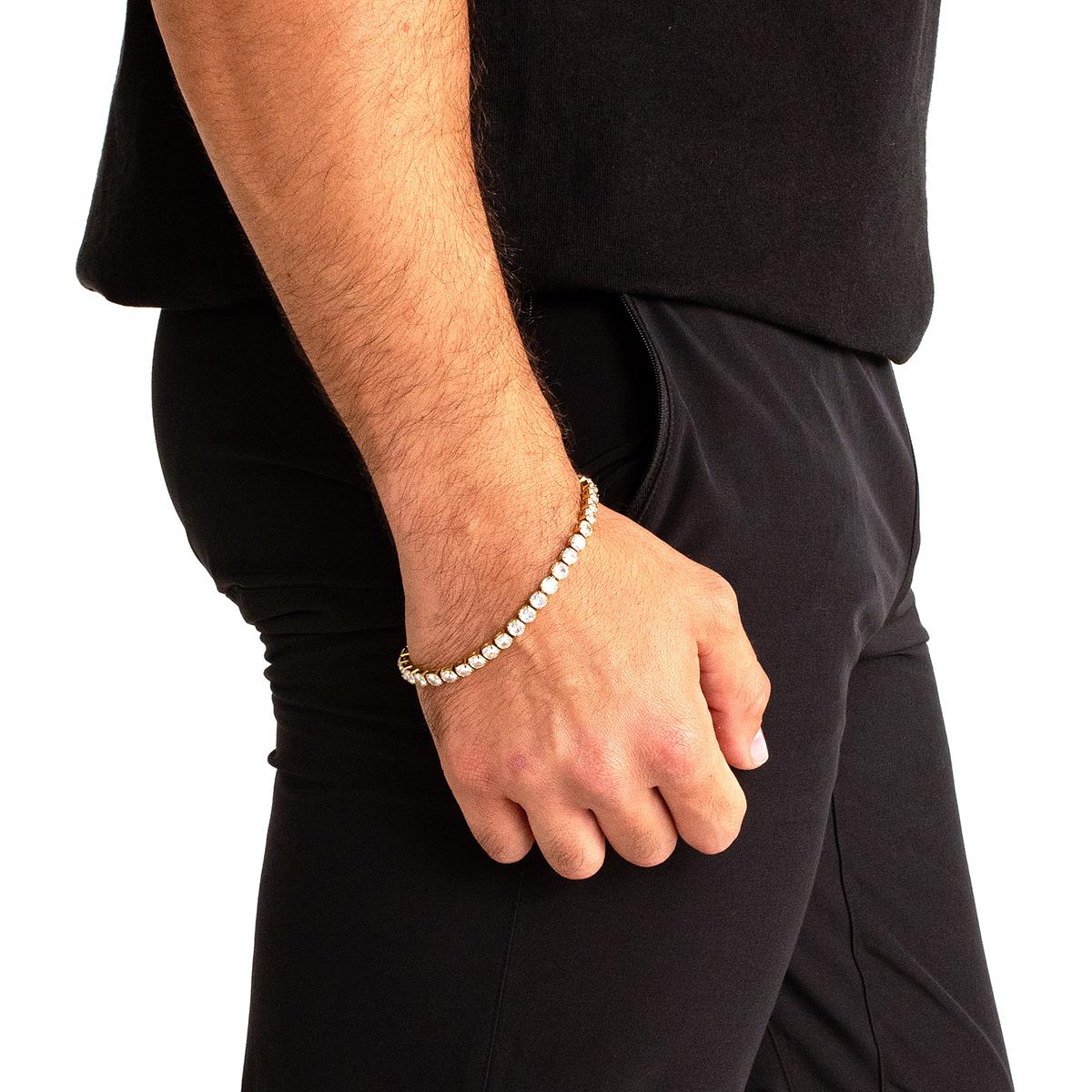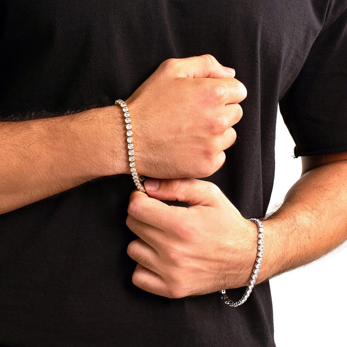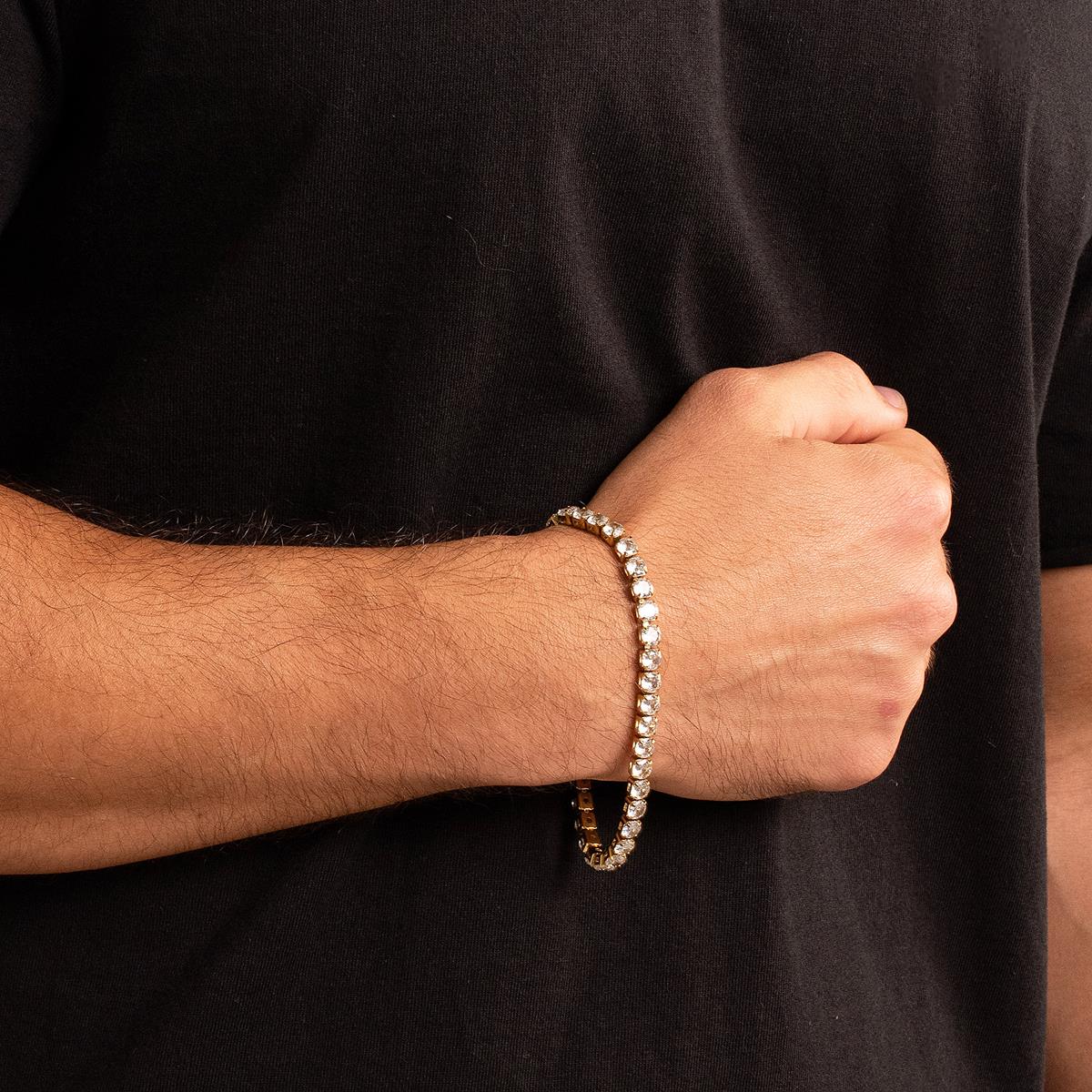 This Crucible Men's Jewelry 18k Gold Plated 5mm Simulated Diamond Tennis Bracelet is the perfect accessory for any occasion. The tennis bracelet is crafted with durable stainless steel and plated with 18K gold. The stones on the bracelet are round cut and prong set. The gemstones are cubic zirconia stones that give this tennis bracelet a high perceived value without the worries of breaking the bank.
