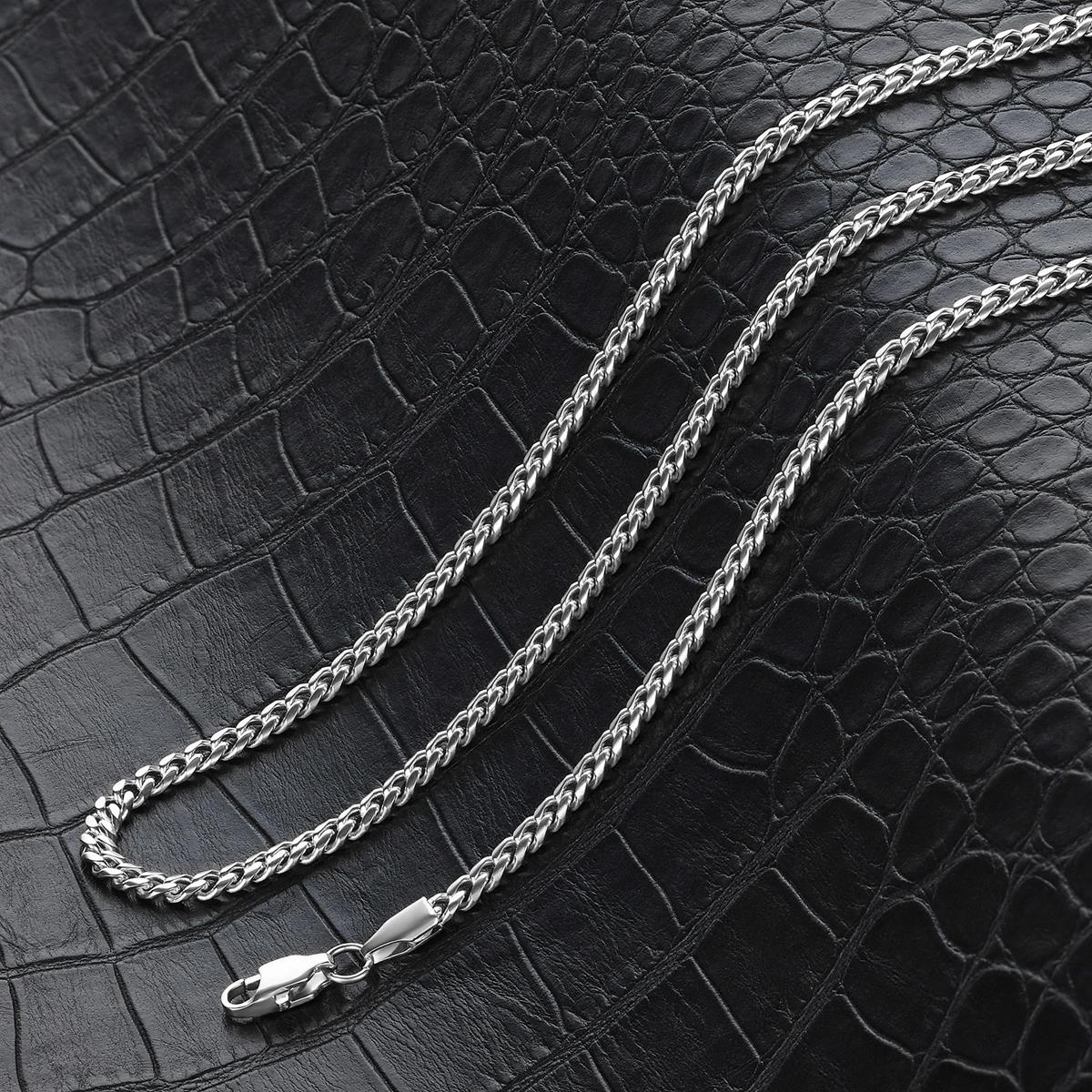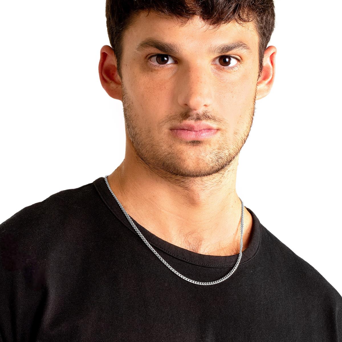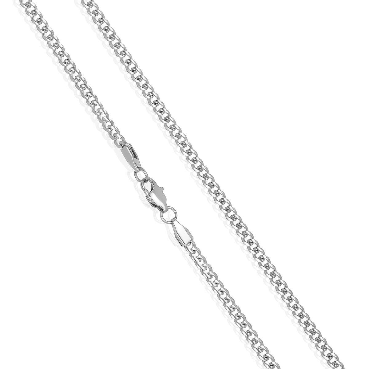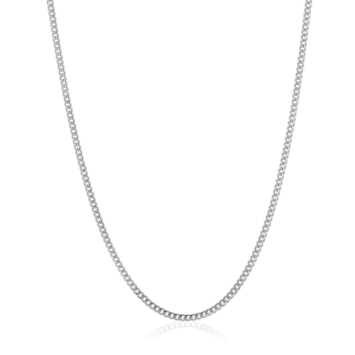 The necklace has a width of 3.5mm or 1/8 inches, and a thickness of 1.5mm or 1/16 inches. The length of the Curb Chain is 22 inches.