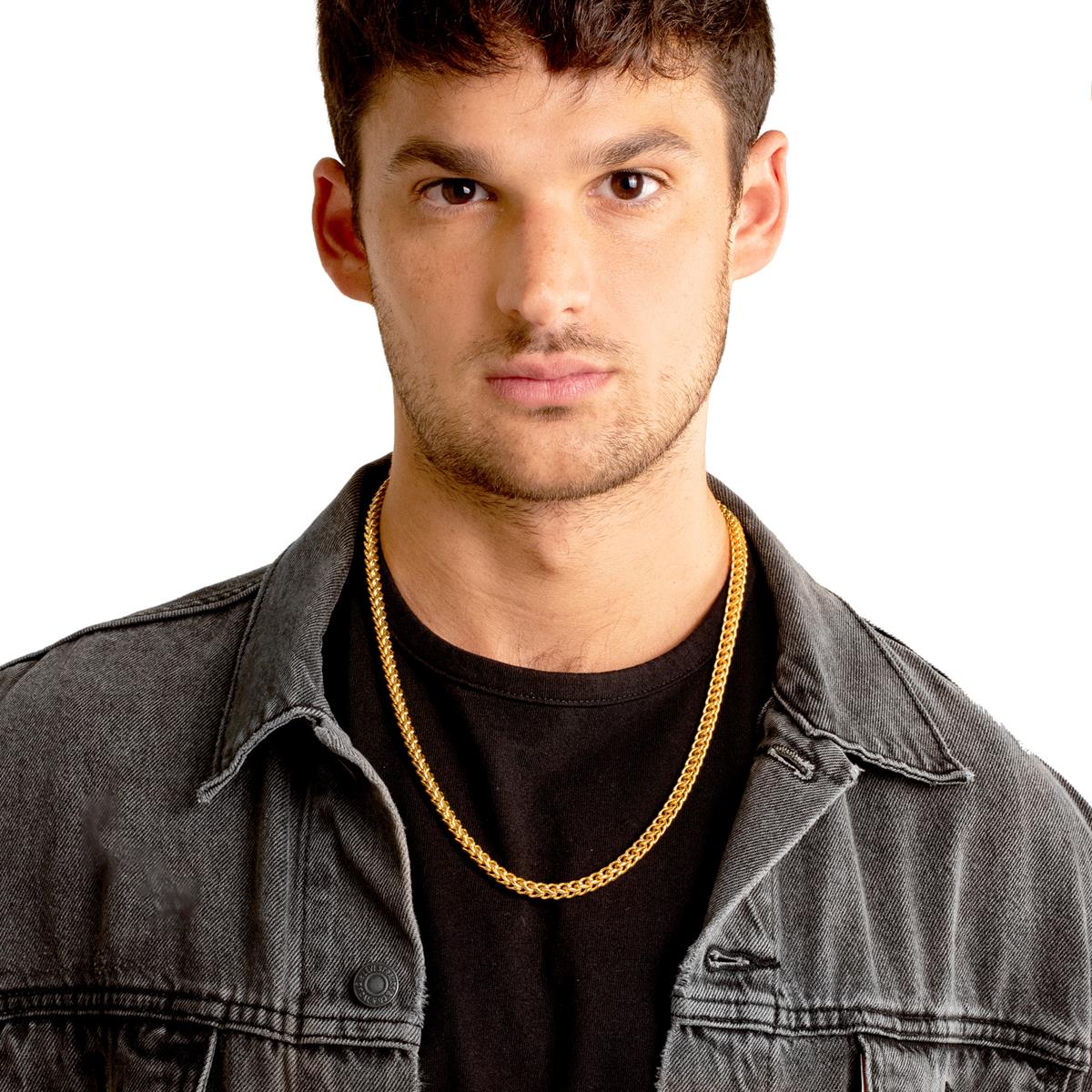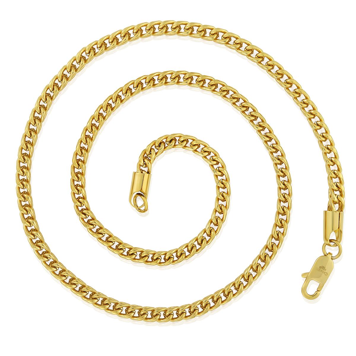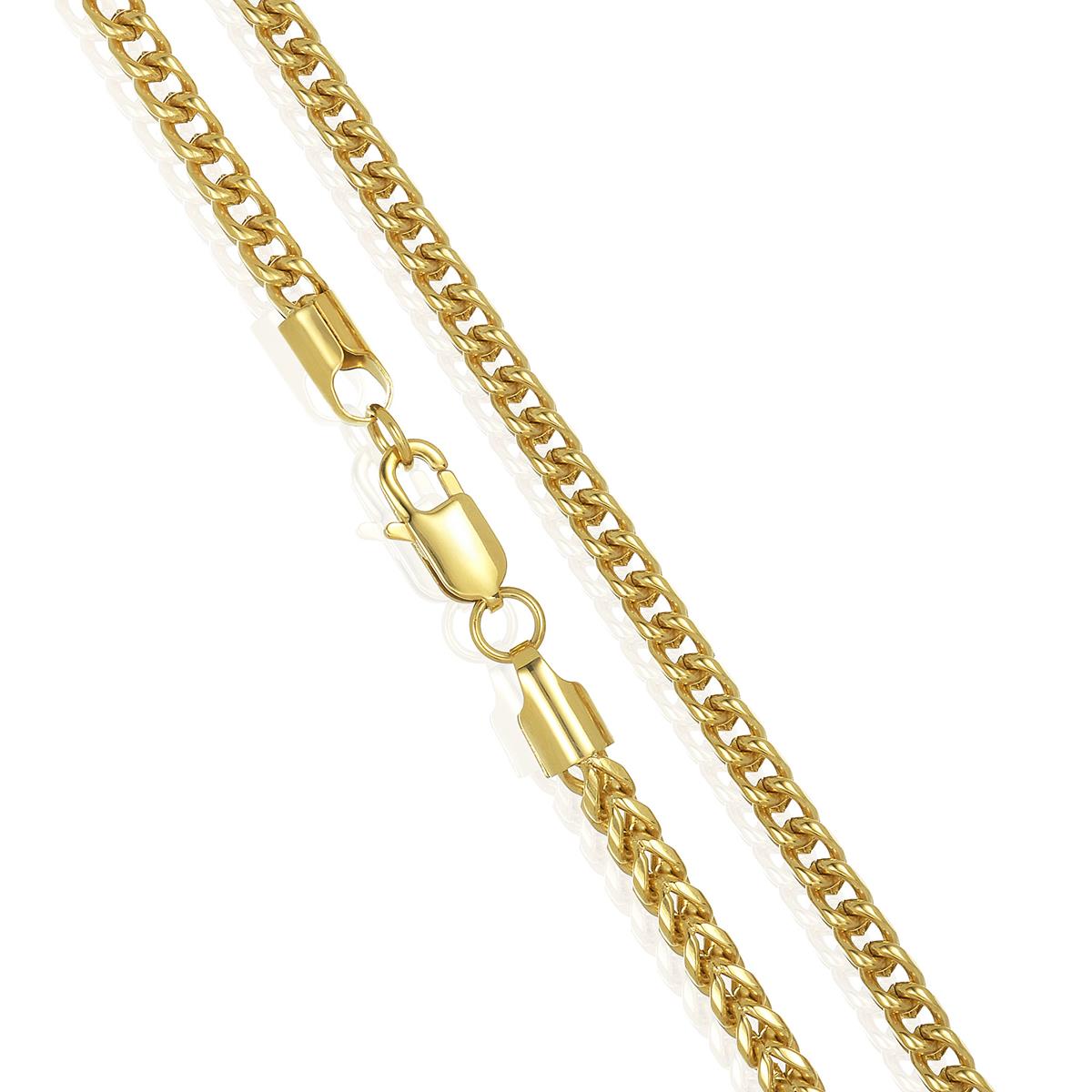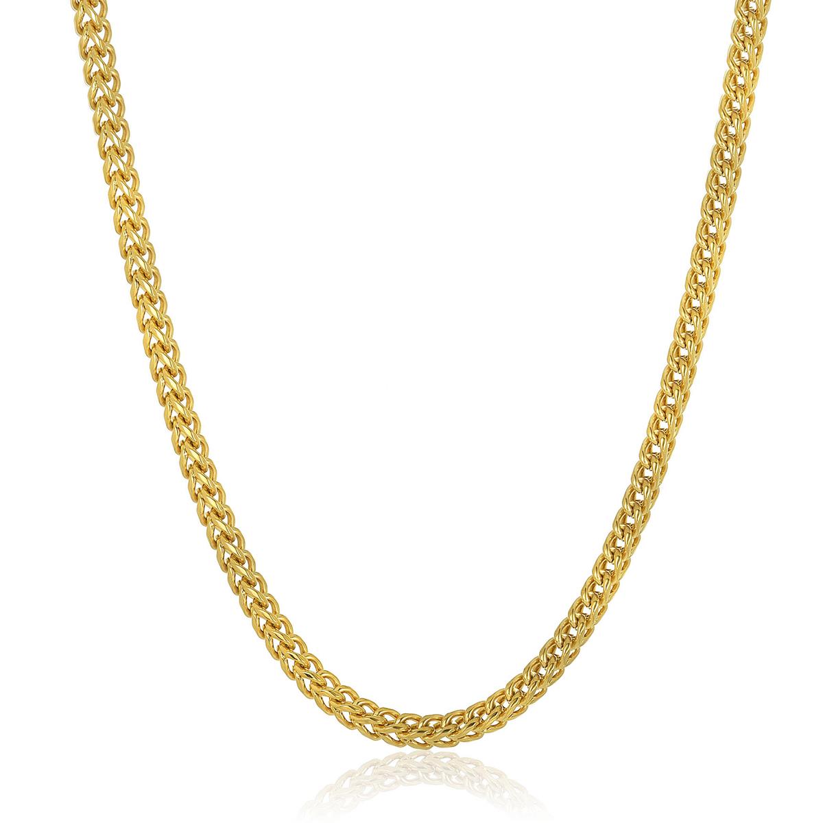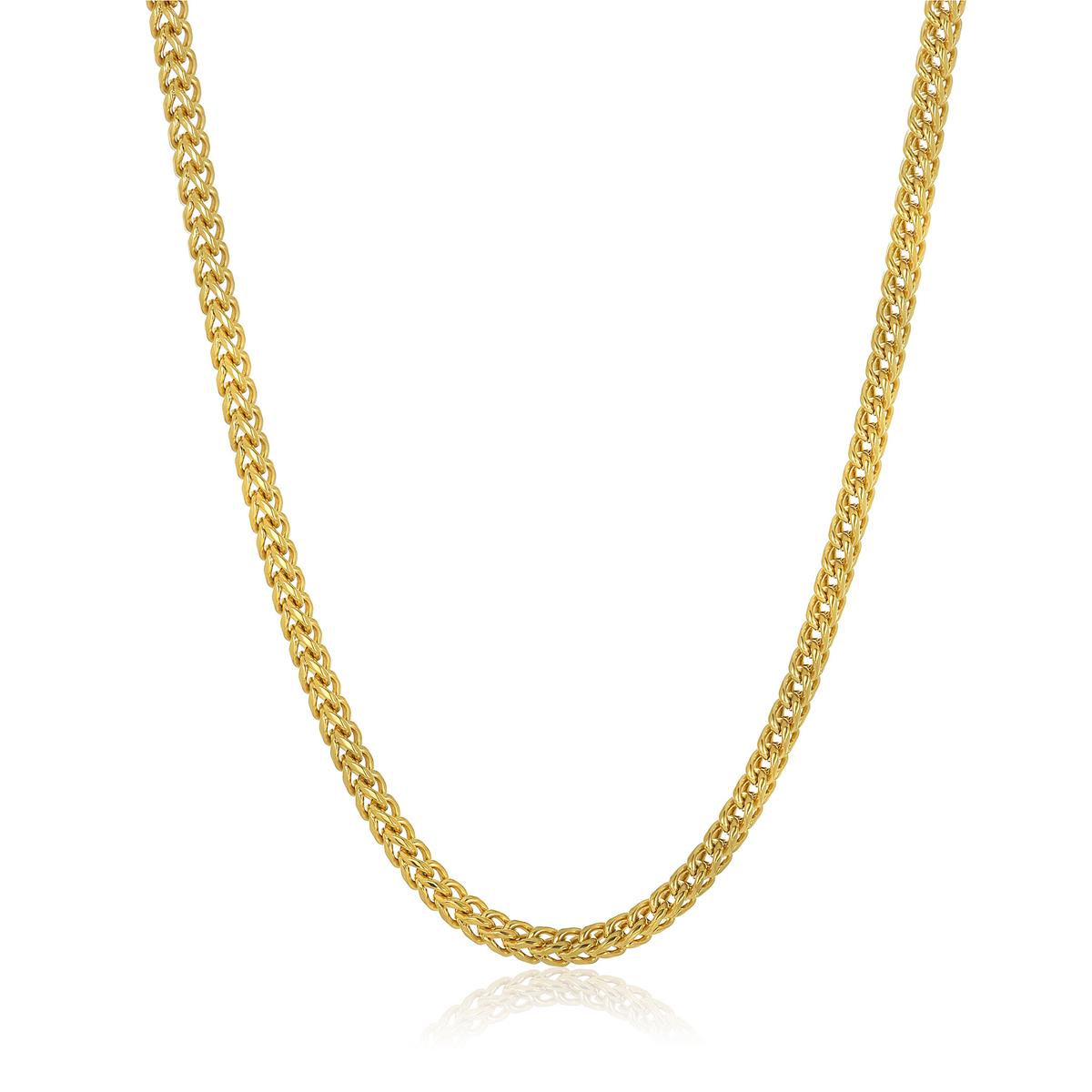 This Crucible Men's Jewelry 5mm Gold Plated Stainless Steel Rounded Franco Chain necklace is an ideal choice for those seeking a heavy duty, long-lasting jewelry accessory. The Franco chain has a durable stainless steel construction and the polished finish gives this piece an optimal shine. The necklace has a width of 5mm or 3/16 inches. The length of the chain is 24 inches and fastens with a lobster claw closure.