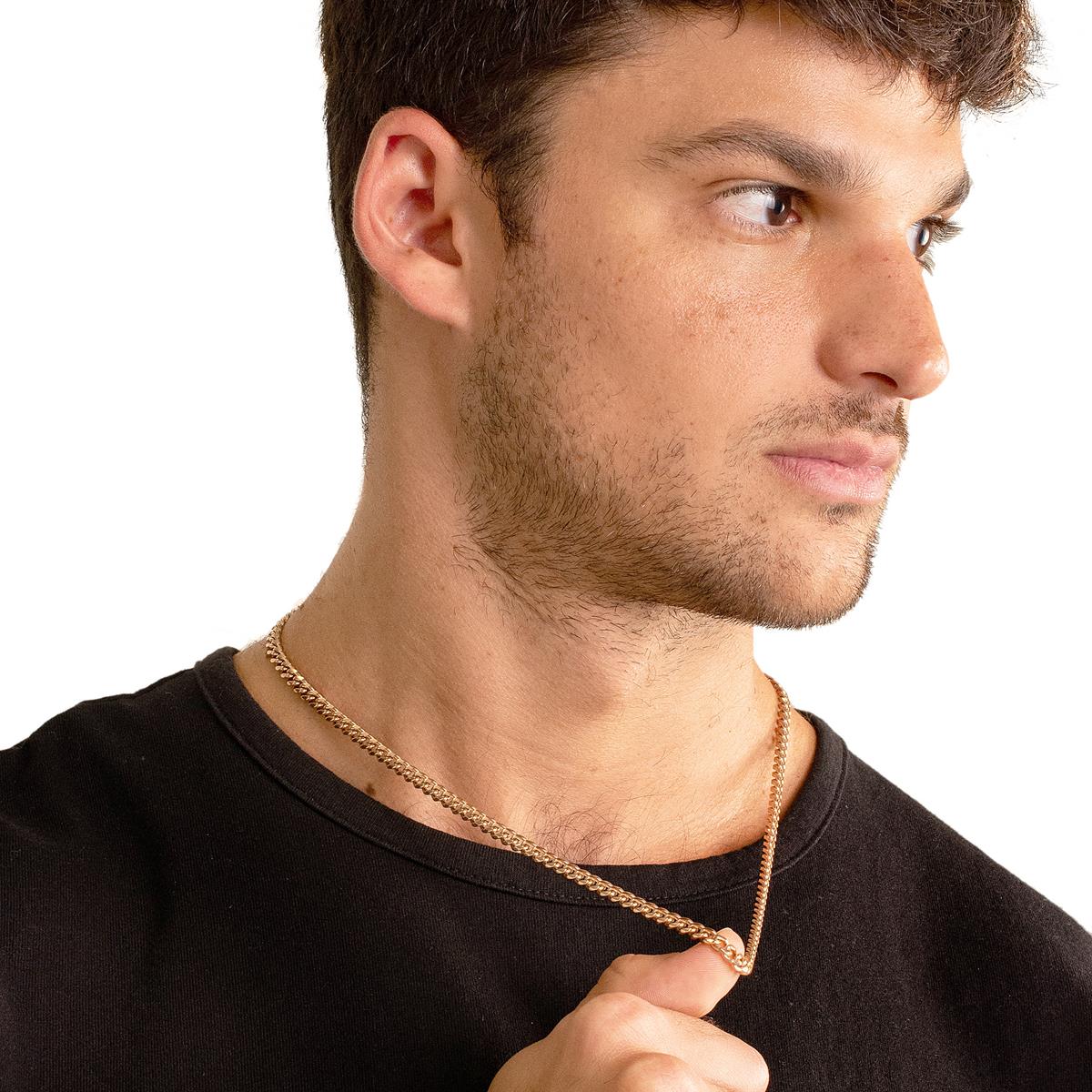This Crucible Men's Jewelry 5mm Rose Gold Plated Stainless Steel Rounded Curb Chain necklace is an ideal choice for those seeking a heavy duty, long-lasting jewelry accessory. The Curb chain has a durable stainless steel construction and the polished finish gives this piece an optimal shine. The necklace has a width of 5mm or 3/16 inches. The length of the chain is 24 inches and fastens with a lobster claw closure.