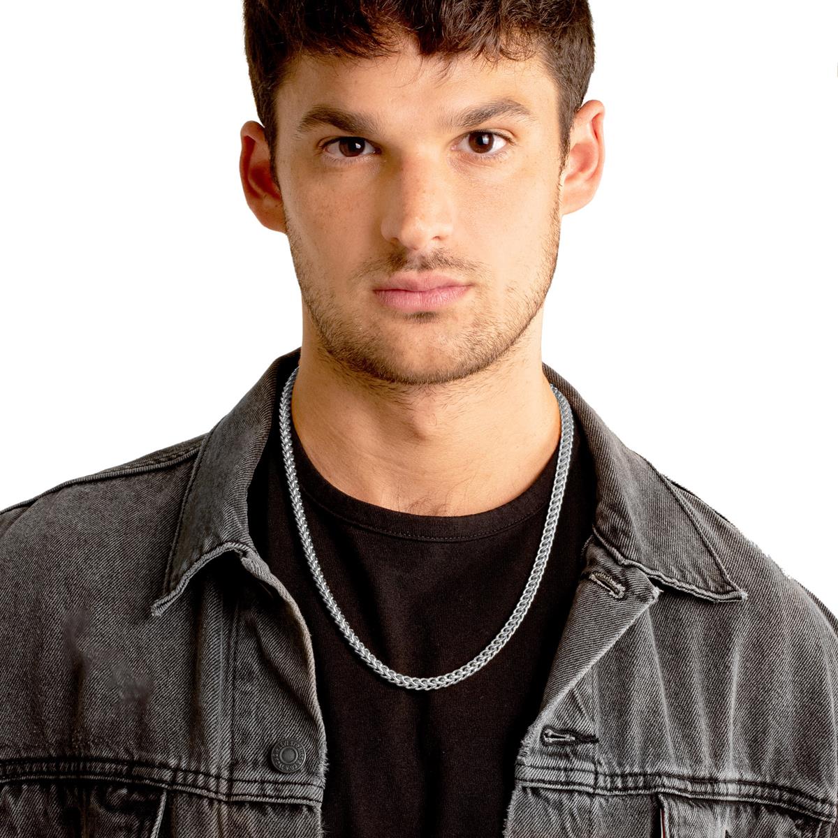 This Crucible Men's Jewelry 5mm Stainless Steel Rounded Franco Chain necklace is an ideal choice for those seeking a heavy duty, long-lasting jewelry accessory. The Franco chain has a durable stainless steel construction and the polished finish gives this piece an optimal shine. The necklace has a width of 5mm or 3/16 inches. The length of the chain is 24 inches and fastens with a lobster claw closure.