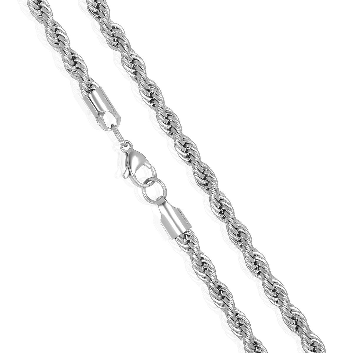 Rock this Crucible Men's Jewelry 6mm Stainless Steel Rope Chain with any look and wear it wherever you go. The polished Rope chain is crafted with durable stainless steel. The piece has a width of 6mm or 1/4 inches, and a length of 26 inches. The necklace stays secure with a lobster claw clasp. The 26 inch chain is the perfect jewelry accessory to wear for any occasion.