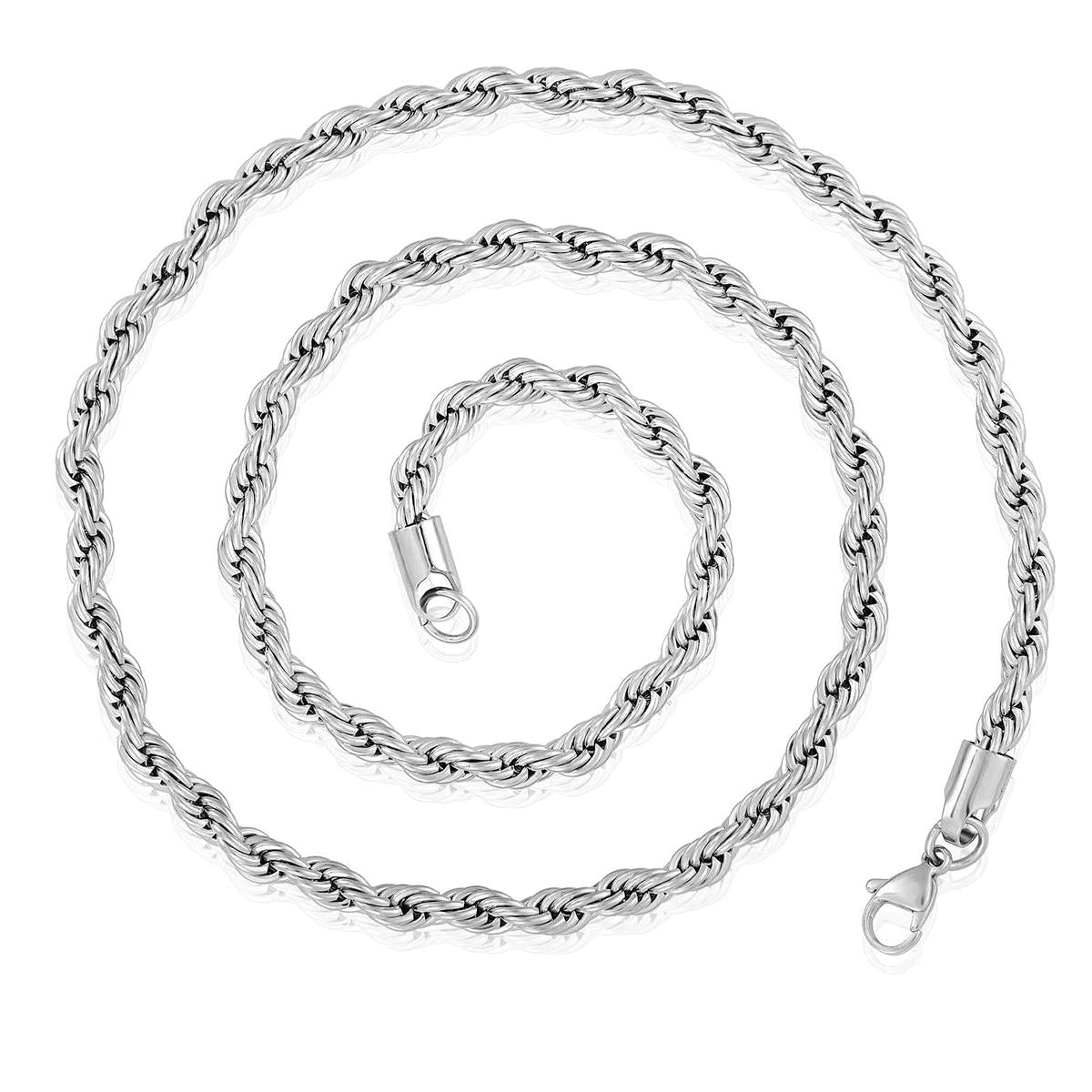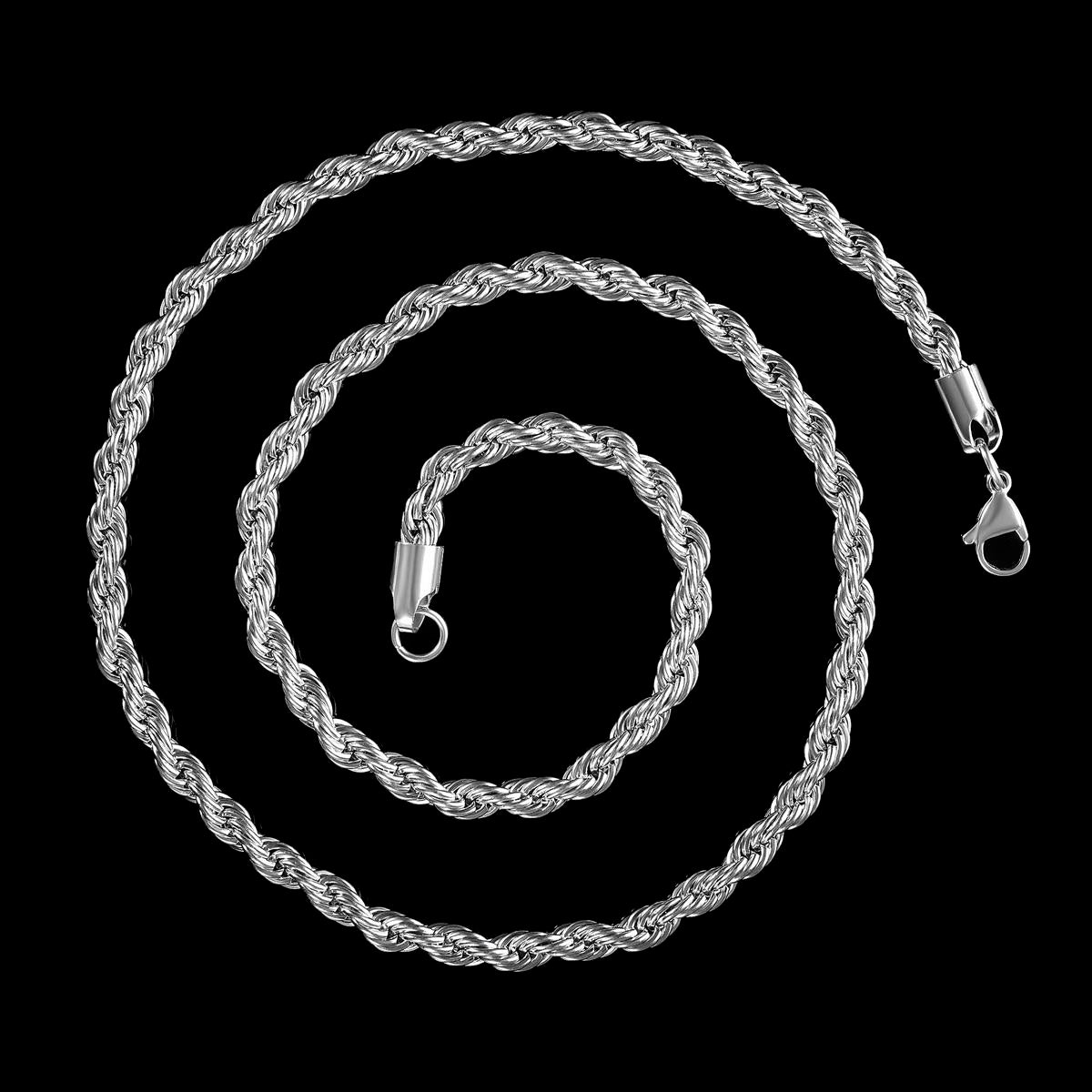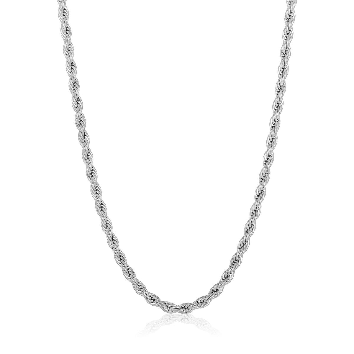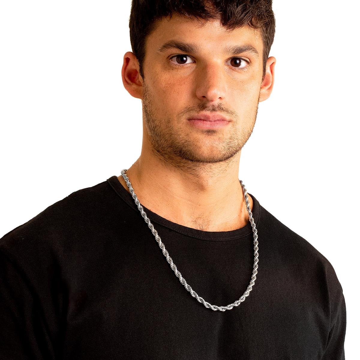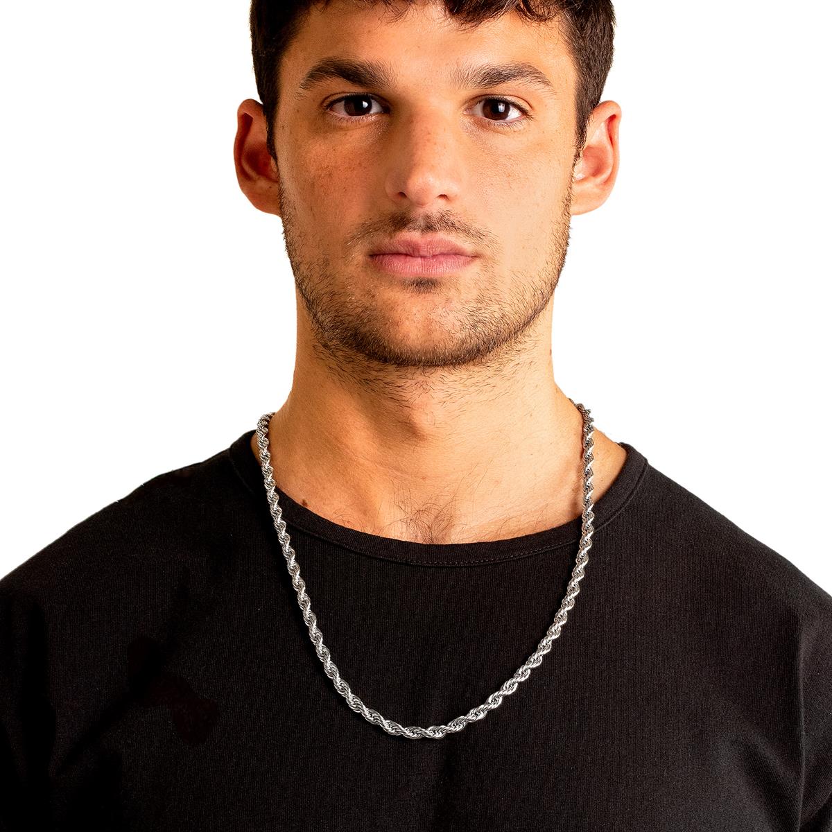 The necklace has a width of 6mm or 1/4 inches, and a thickness of 6mm or 1/4 inches. The length of the Rope Chain is 26 inches.