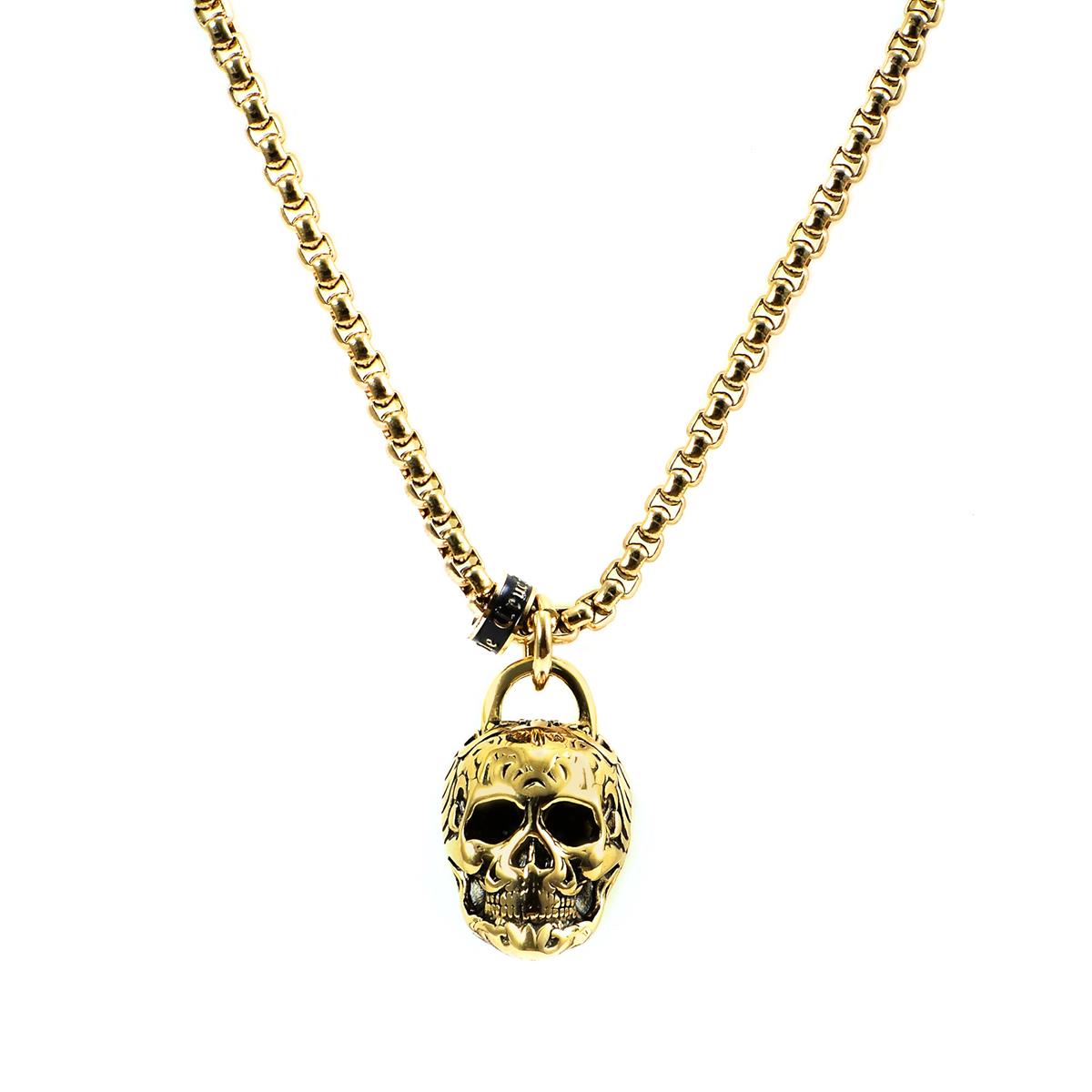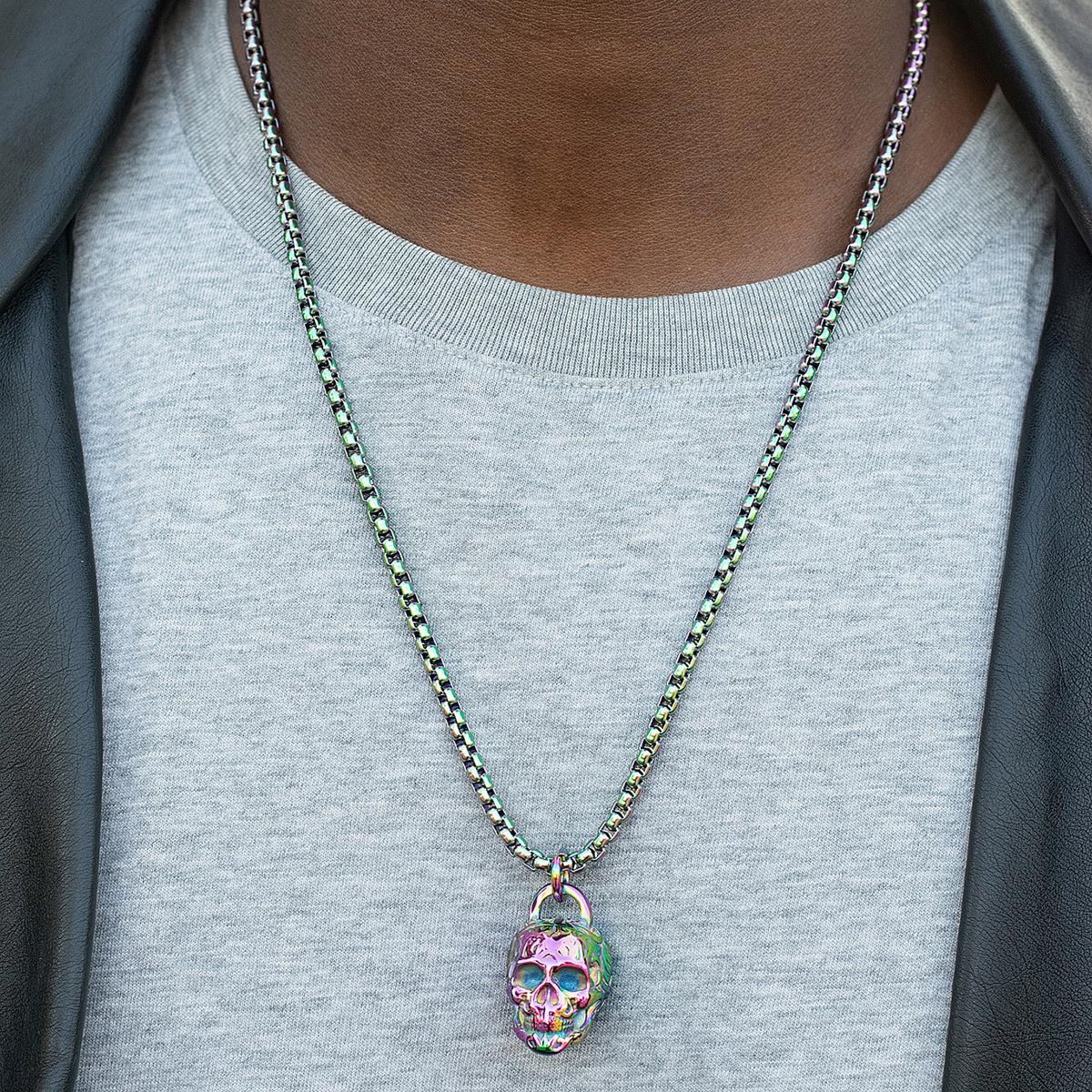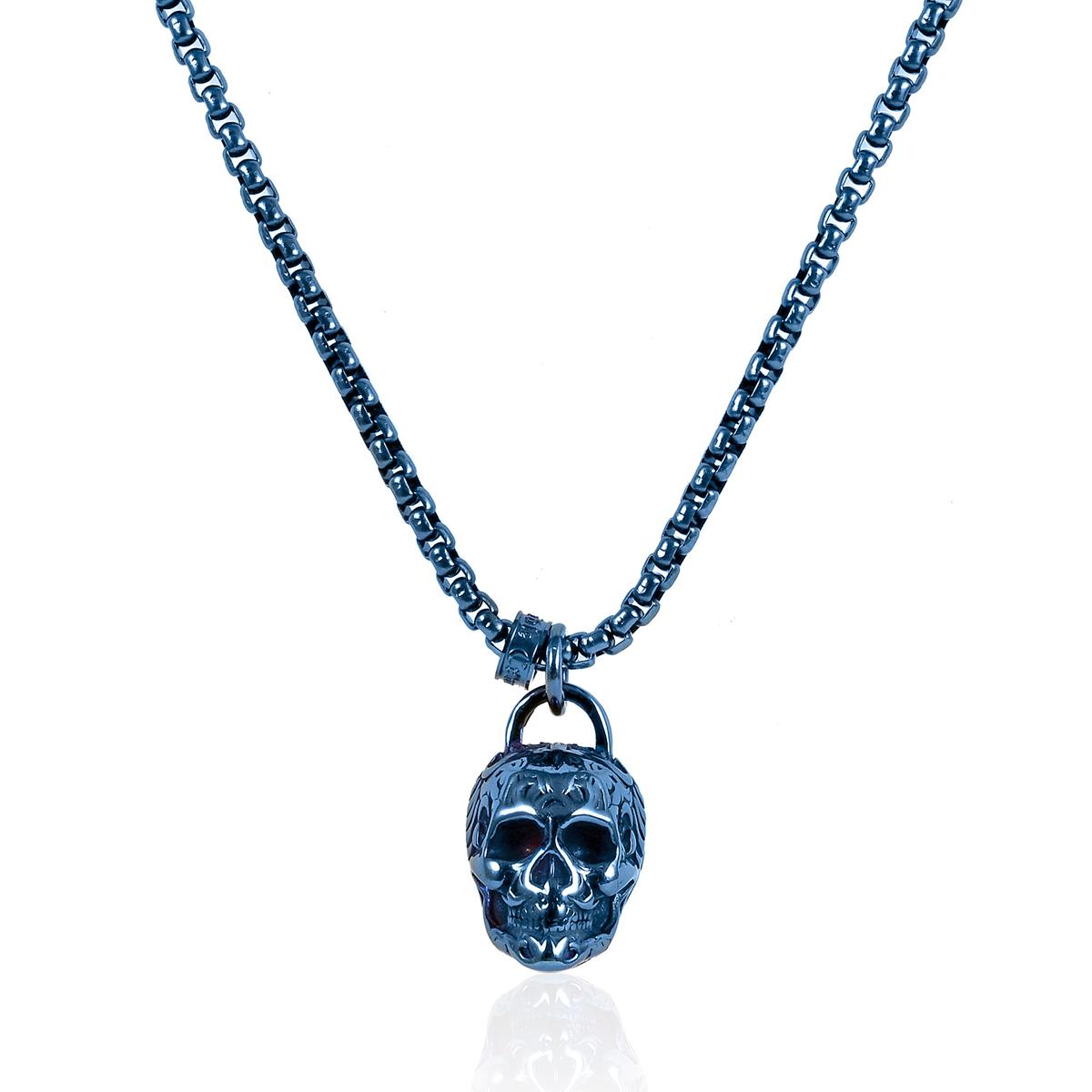 Crucible Medium 25mm Skull Necklace on 24 Inch 4mm Box Chain