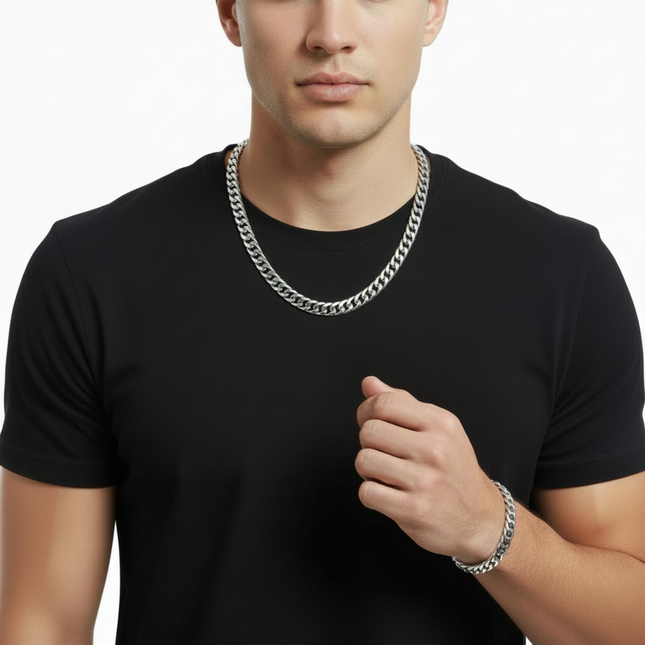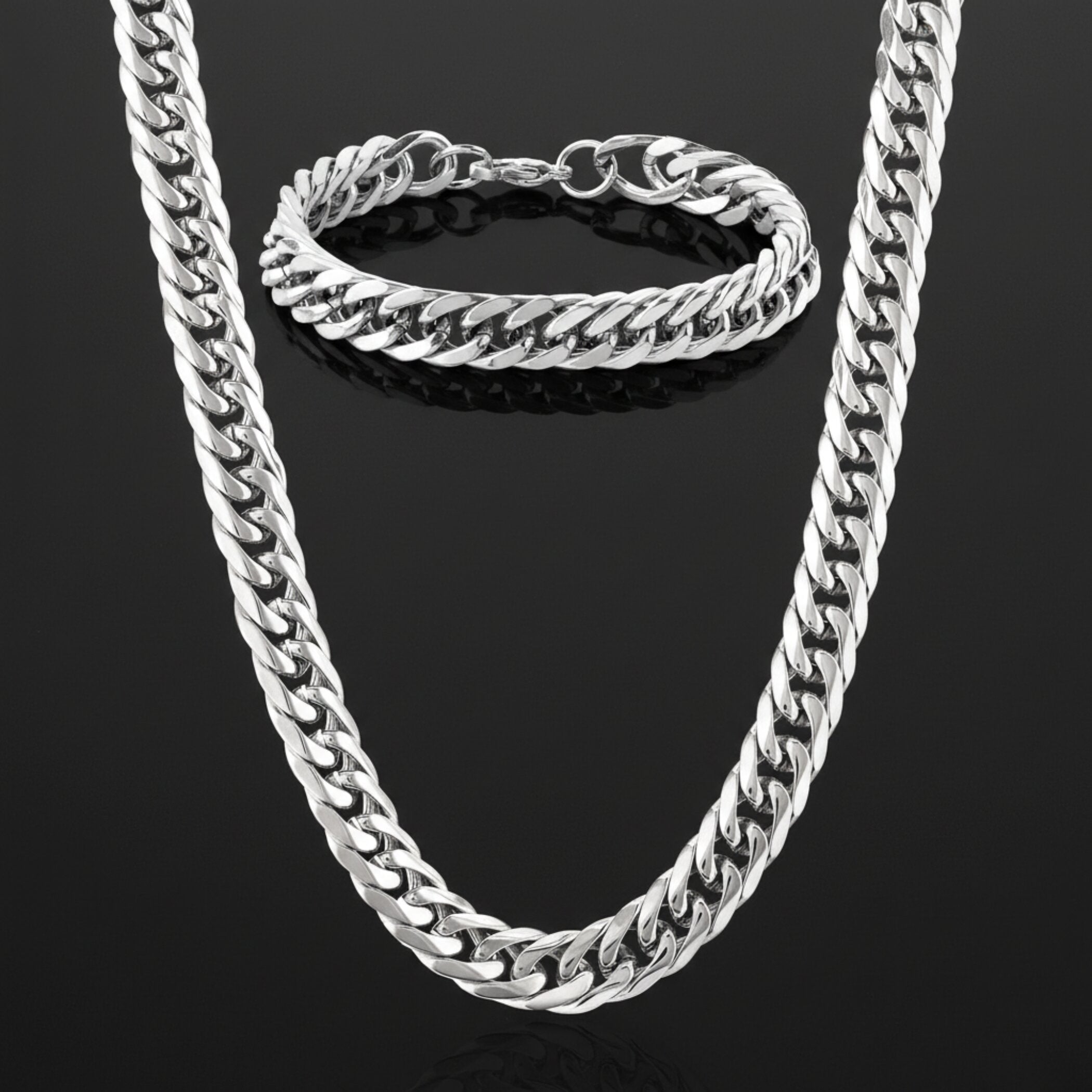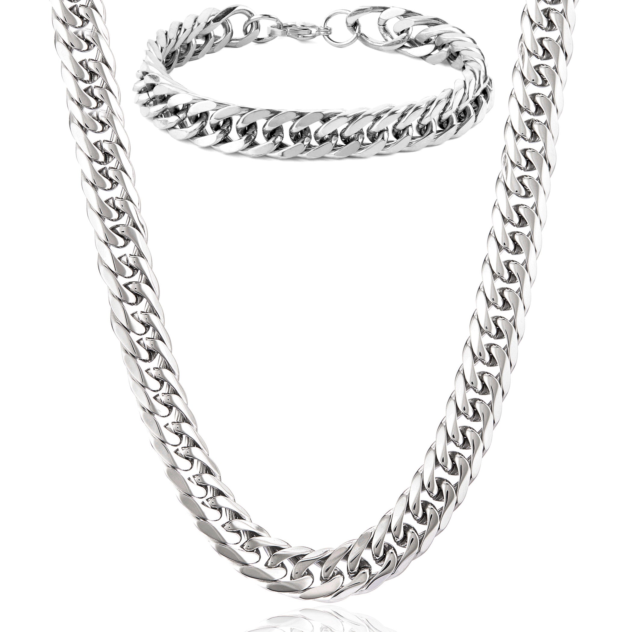 Crucible Men's Bracelet and Necklace Stainless Steel Curb Chain Set