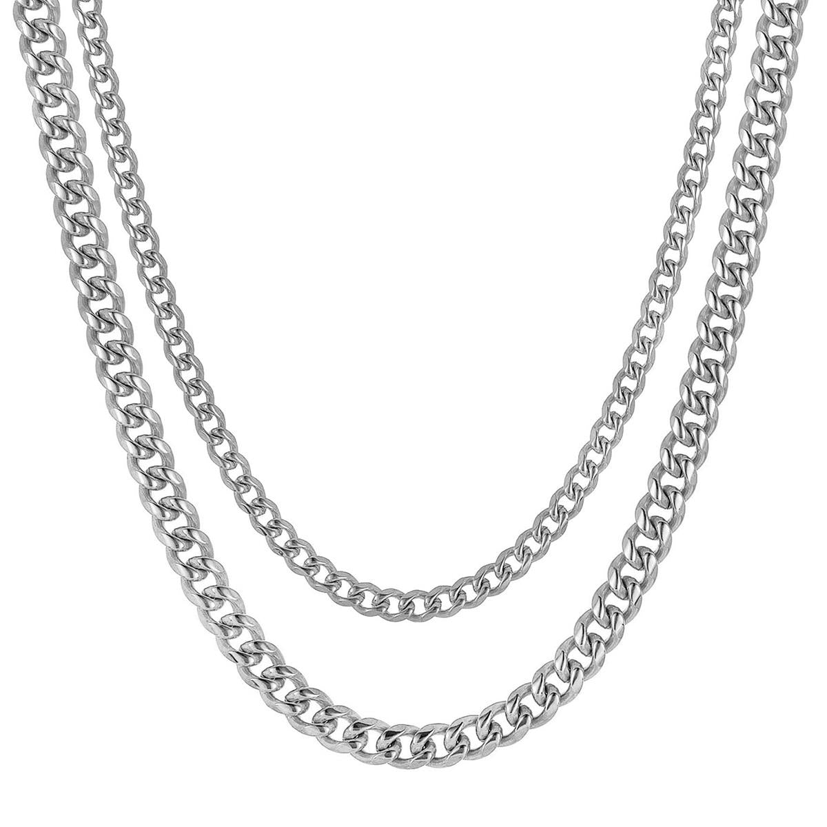 Create a layered look when you wear these Crucible Men's Jewelry 5mm and 7mm Stainless Steel Rounded Curb Chain Necklaces. Wear both chains together to create a stylish layered look or wear the chains separate chained to your favorite pendant. One chain has a length of 24 inches and a width of 5mm wide or 3/16 inches. The second chain has a length of 26 inches and a width of 7mm wide of 1/4 inches. Both pieces fasten with a lobster claw clasp. These stylish round Curb chains are crafted with durable stainless steel and have a polished finish so they can easily be paired with any style.