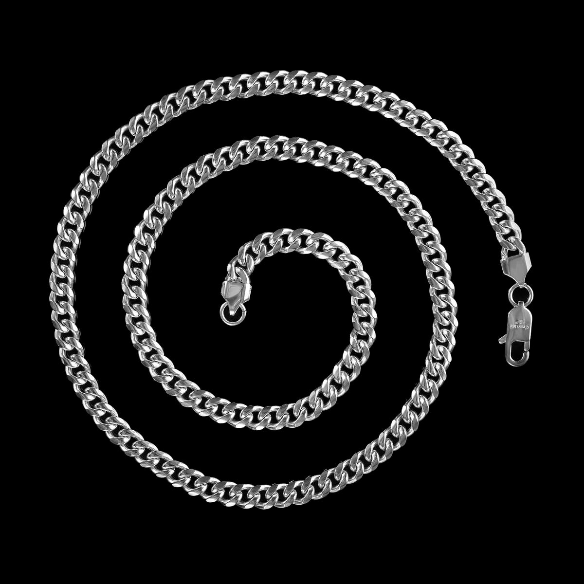 The 24 Inch Chain Measures 5mm wide or 3/16 inches and the thickness is 2.5mm or 1/8 inches.