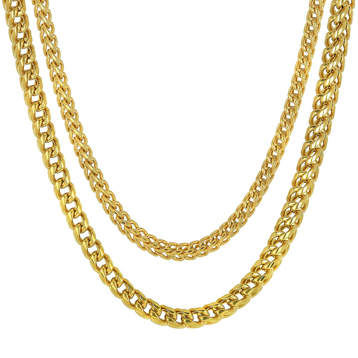 Create a layered look when you wear these Crucible Men's Jewelry 5mm and 7mm Stainless Steel Rounded Franco Chain Necklaces. Wear both chains together to create a stylish layered look or wear the chains separate chained to your favorite pendant. One chain has a length of 24 inches and a width of 5mm wide or 3/16 inches. The second chain has a length of 26 inches and a width of 7mm wide of 1/4 inches. Both pieces fasten with a lobster claw clasp. These stylish round Franco chains are crafted with durable stainless steel and have a polished finish so they can easily be paired with any style.