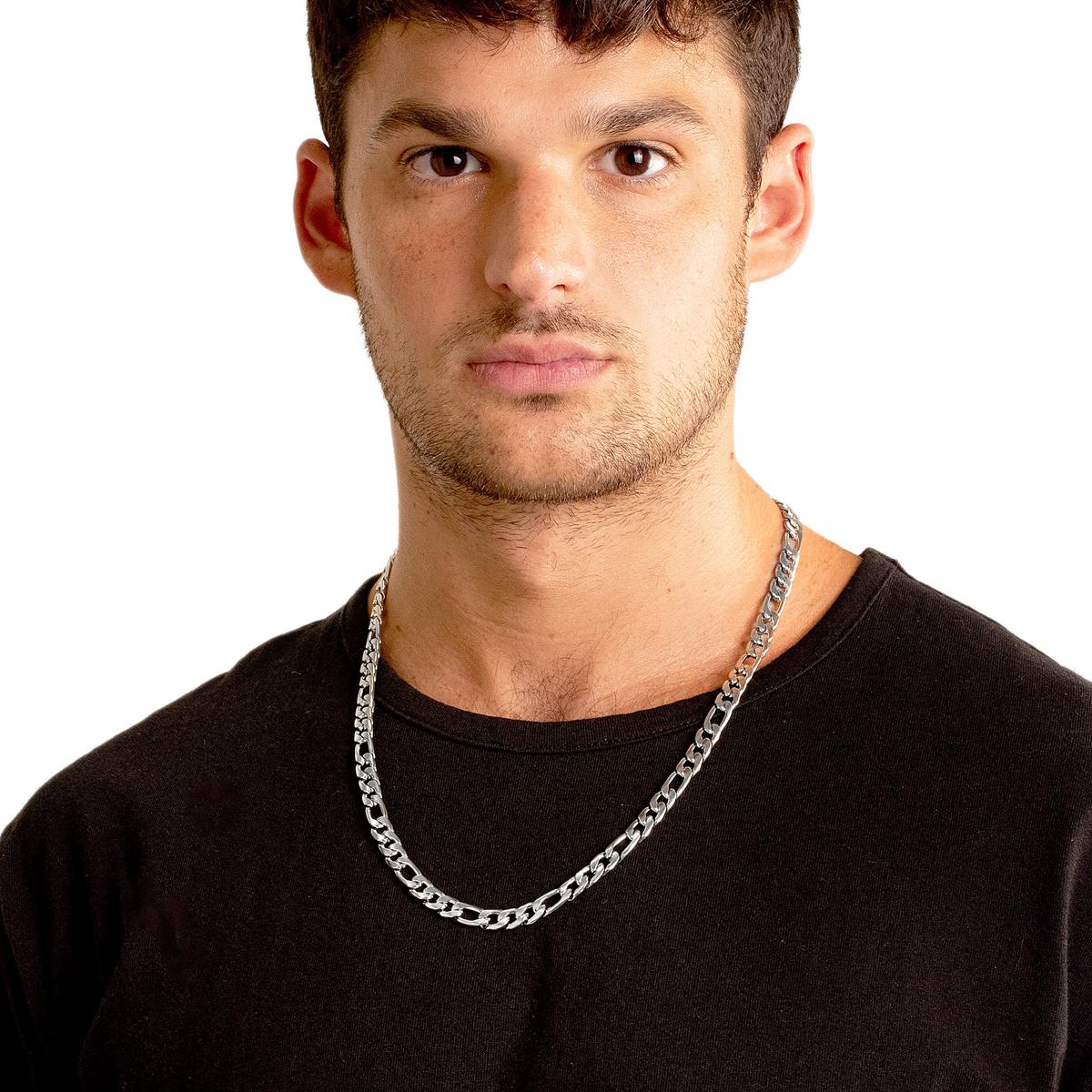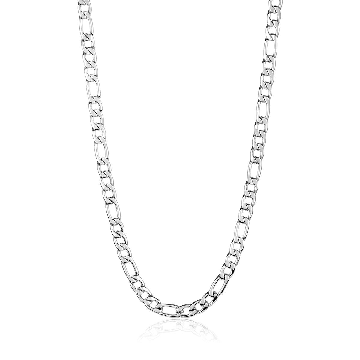Complete any look when wearing this bold and classic Invicta Jewelry Men's Figaro chain necklace. The chain necklace is crafted with durable stainless steel and features an alternating link design with three small round links followed by one elongated oval link. The chain necklace has a length of 24 inches, a width of 8 millimeters and fastens with a lobster claw clasp. Wear the necklace with your favorite watch!