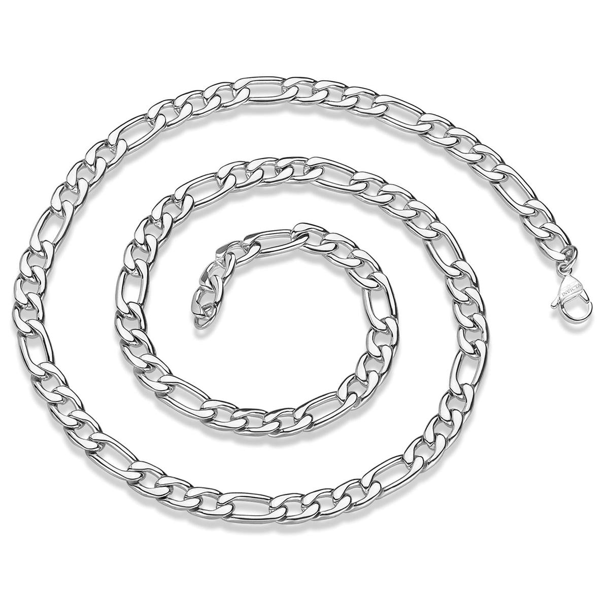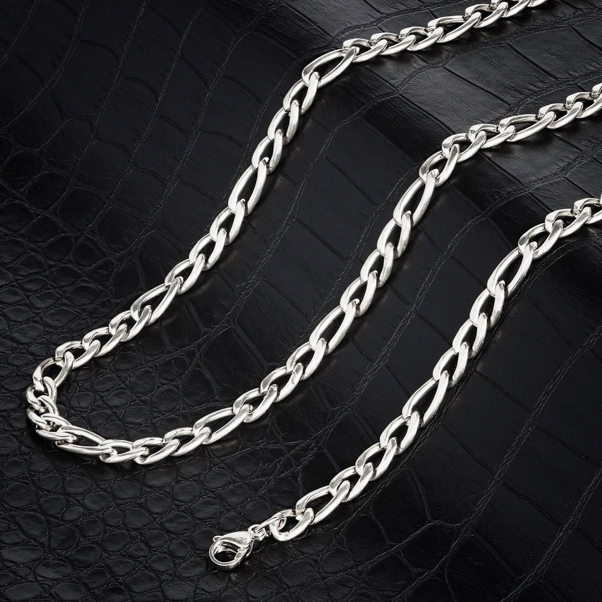 Invicta Jewelry Men's Polished Figaro Chain Stainless Steel Necklace (8mm) - 24 Inches