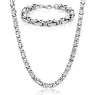 Invicta Jewelry Men's Polished Byzantine Chain Stainless Steel Bracelet and Necklace Set (8mm)