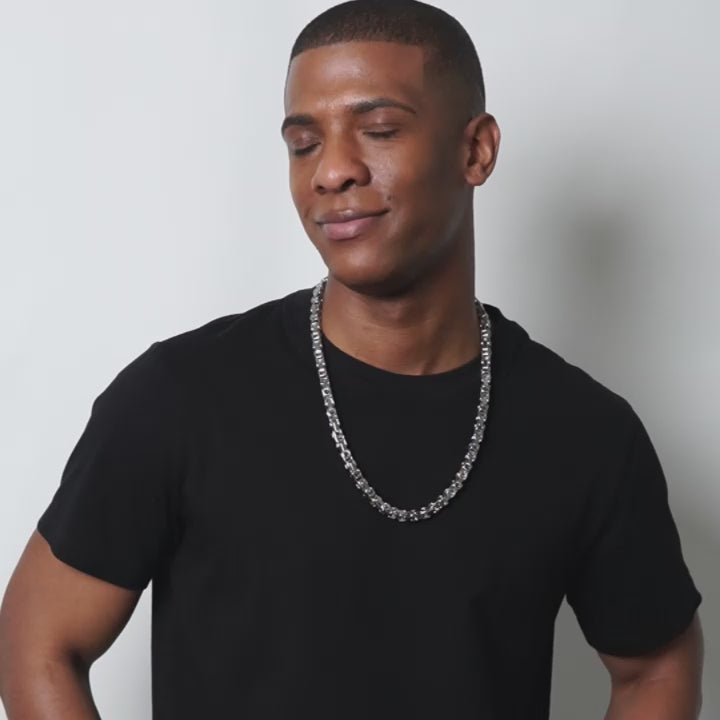 Grab this chain jewelry set and elevate your style. Expertly crafted with stainless steel, this men's byzantine set boasts a sleek and polished design. The intricate chain link design exudes sophistication, making it the perfect accessories to wear for any casual or professional look. The polished set comes together with the alternating two-tone links.