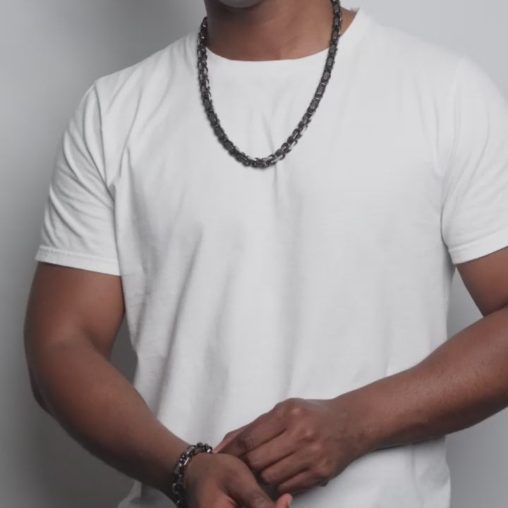 Invicta Jewelry Byzantine Chain Black Two Tone Bracelet and Necklace Set