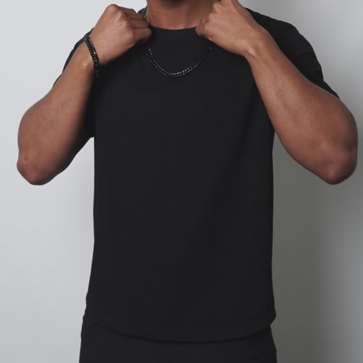 Invicta Jewelry Double Curb Chain Black Bracelet and Necklace Set