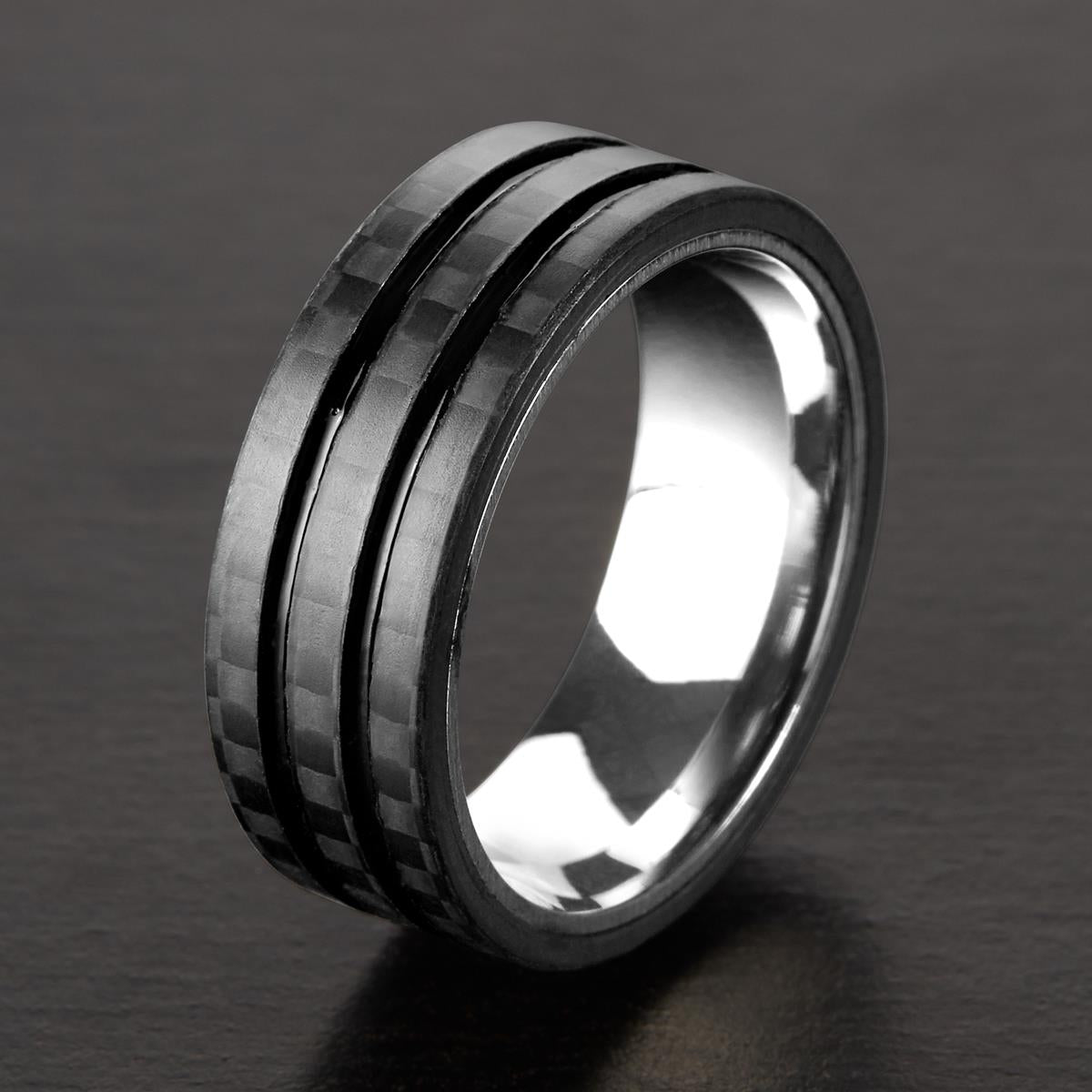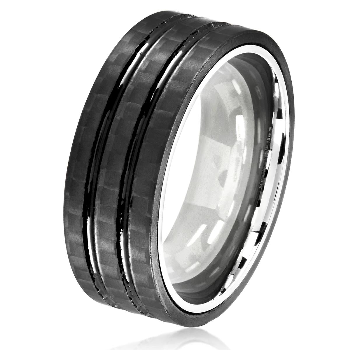 Crucible Men's Carbon Fiber Dual Grooved Comfort Fit Ring