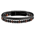 Crucible Black Leather Black Clasp Red Tiger Eye and Black Onyx Bracelet