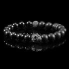 Crucible Skull Stretch Bracelet with 10mm Matte and Polished Black Onyx Beads