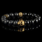 Single Skull Stretch Bracelet with 10mm Matte and Polished Black Onyx Beads