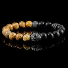 Crucible Skull Stretch Bracelet with 10mm Matte Black Onyx and Picture Jasper Beads