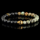 Crucible Gold Skull Stretch Bracelet with 8mm Matte Black Onyx and African Turquoise Onyx Beads