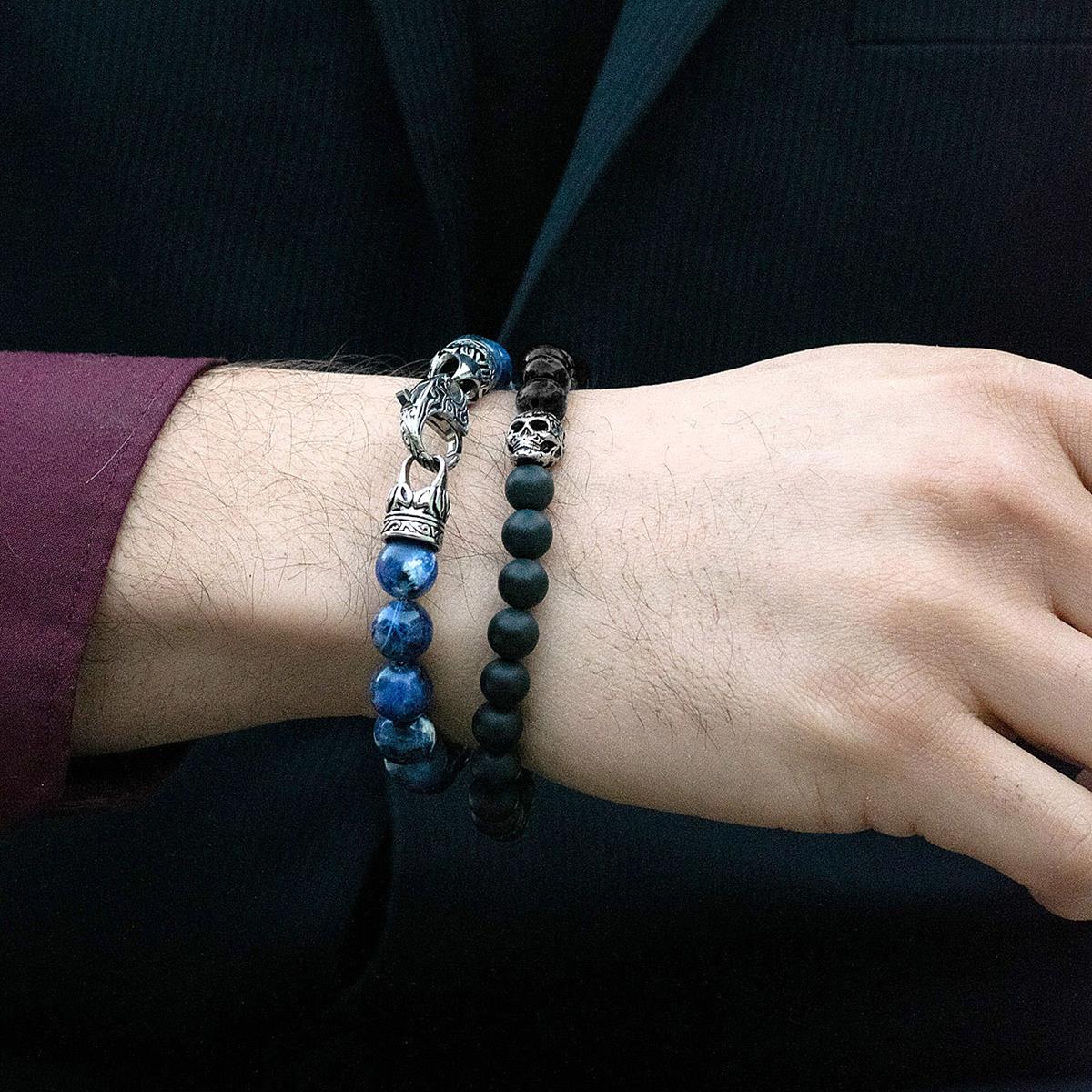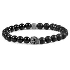 Crucible Skull Stretch Bracelet with 8mm Matte and Polished Black Onyx Beads