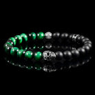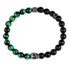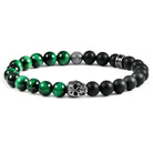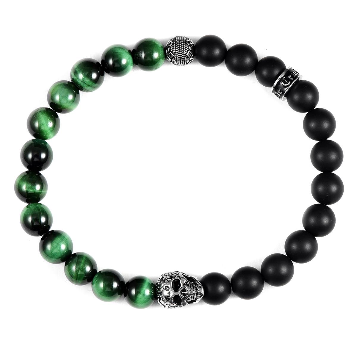 Crucible Skull Stretch Bracelet with 8mm Matte Black Onyx and Green Tiger Eye Beads