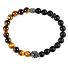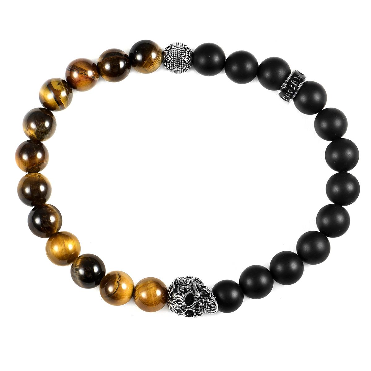 Crucible Skull Stretch Bracelet with 8mm Matte Black Onyx and Tiger Eye Beads