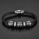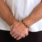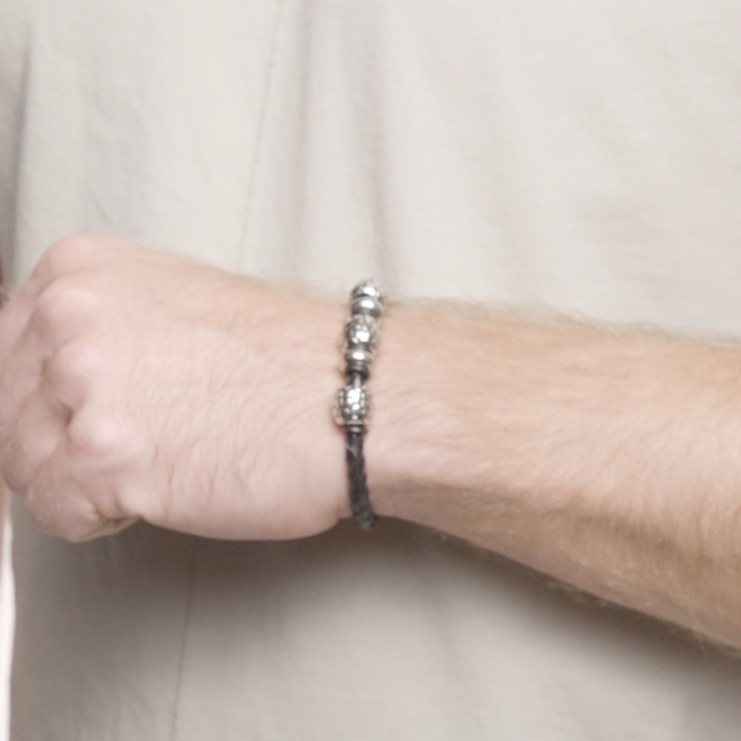 Crucible Cobblestone Pattern Beaded Black Braided Leather Bracelet