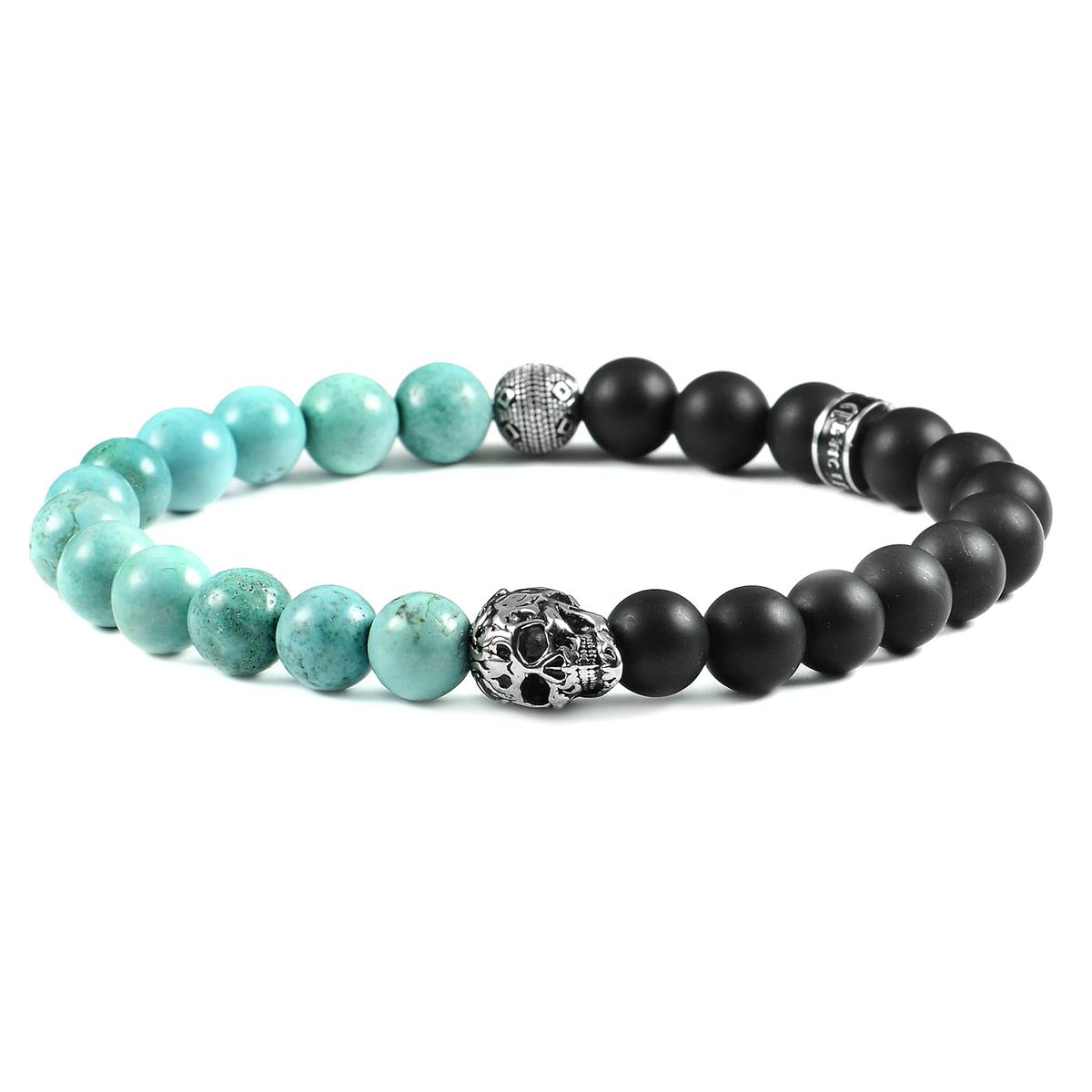 Crucible Skull Stretch Bracelet with 8mm Matte Black Onyx and Genuine Turquoise Onyx Beads